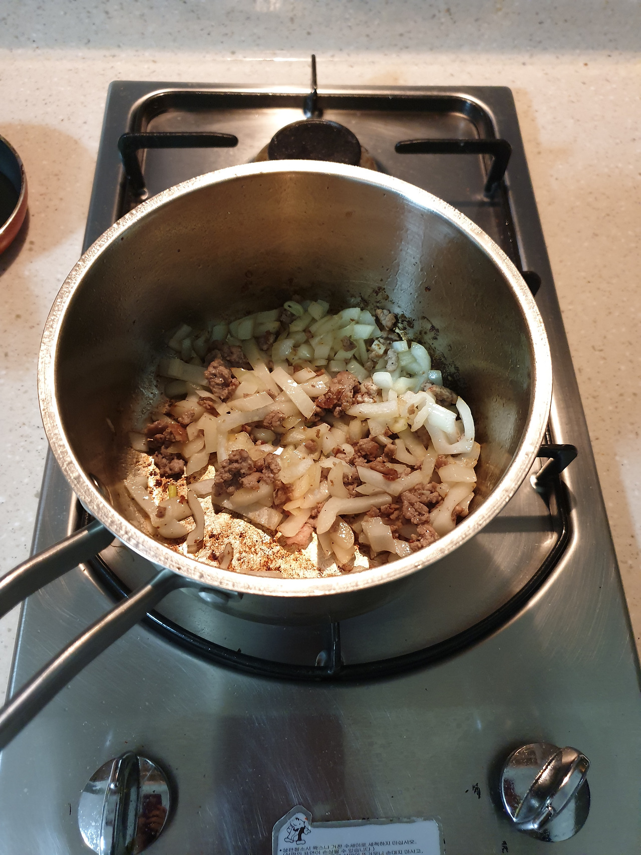 1.고기볶기 : 카레용 돼지고기+소고기 다짐육 돼지고기는 원래 기름기 많은 부위를 볶아서 돼지기름이 녹아 들어야 맛있다고 하는데, 냉동실에 계속 두기 불안불안한 카레용 돼지고기와 파스타에 넣으려고 소분해둔 소고기 다짐육을 처리하기로 했다. 가니쉬로는 기름기 많은 고기보다 카레용 안심을 선호하기도 하고. 요리란 결국 내가 맛있어야지, 내가 만들면서 굳이 남에 입맛에 맞출거 있나. 남이 차려주는 밥상보다 내가 만든 요리가 좋은 이유는 내 입맛대로 할 수 있다는 것, 그거 하나인데. 어쨌든 대부분은 기름기 있는 돼지고기를 볶아서 돼지기름을 내주는 것을 선호한다고 한다.