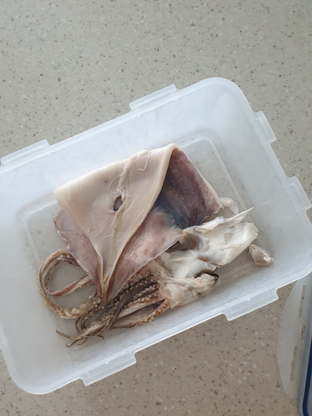 어떤 방송 프로그램에서 봤는데 말린 오징어를 불릴 때 막걸리에 24시간 담궈두면 잘 불릴 수 있다고 한다. 말린 오징어 두 마리에 막걸리 한통+막걸리와 동일한 양의 물로 불린다. 24시간 조금 넘게, 거의 30시간을 담가뒀다.