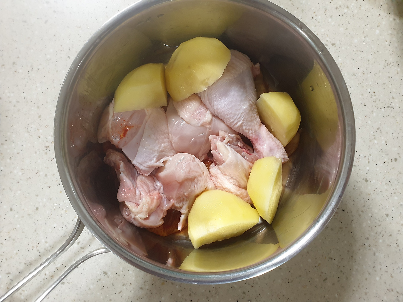감자를 넣어주면 닭볶음탕 느낌이 난다.