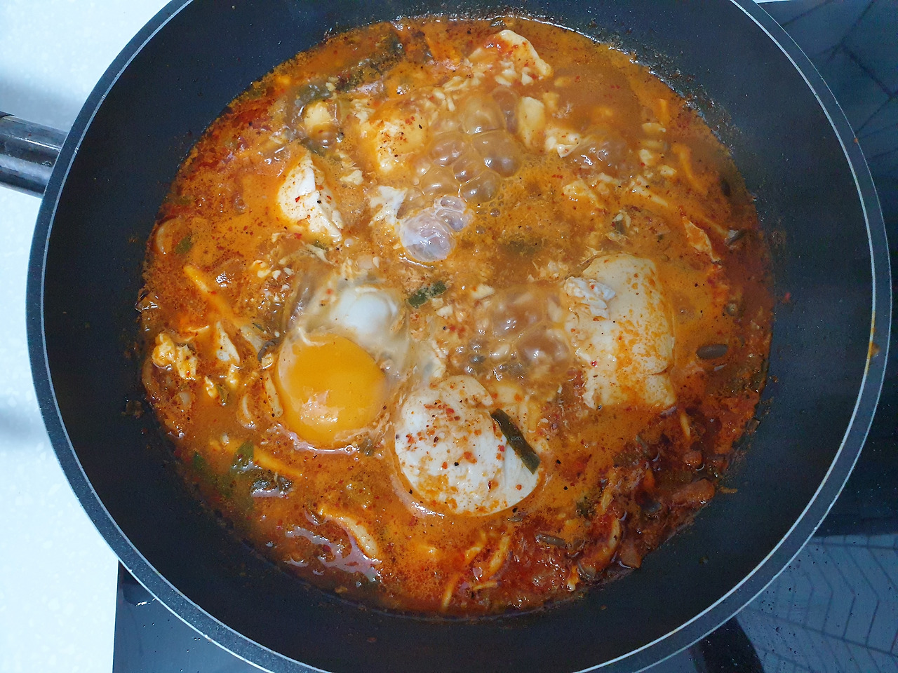 오~ 엄지 척이다. 마지막으로 달걀 하나 톡.