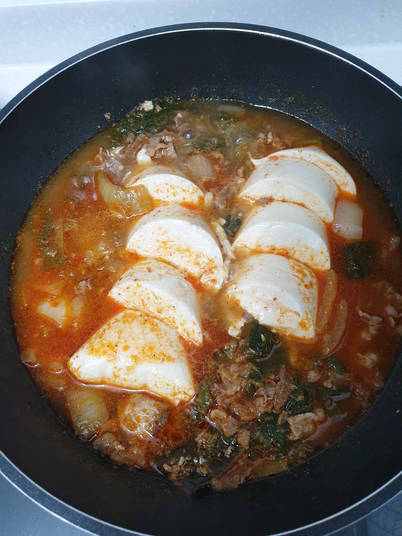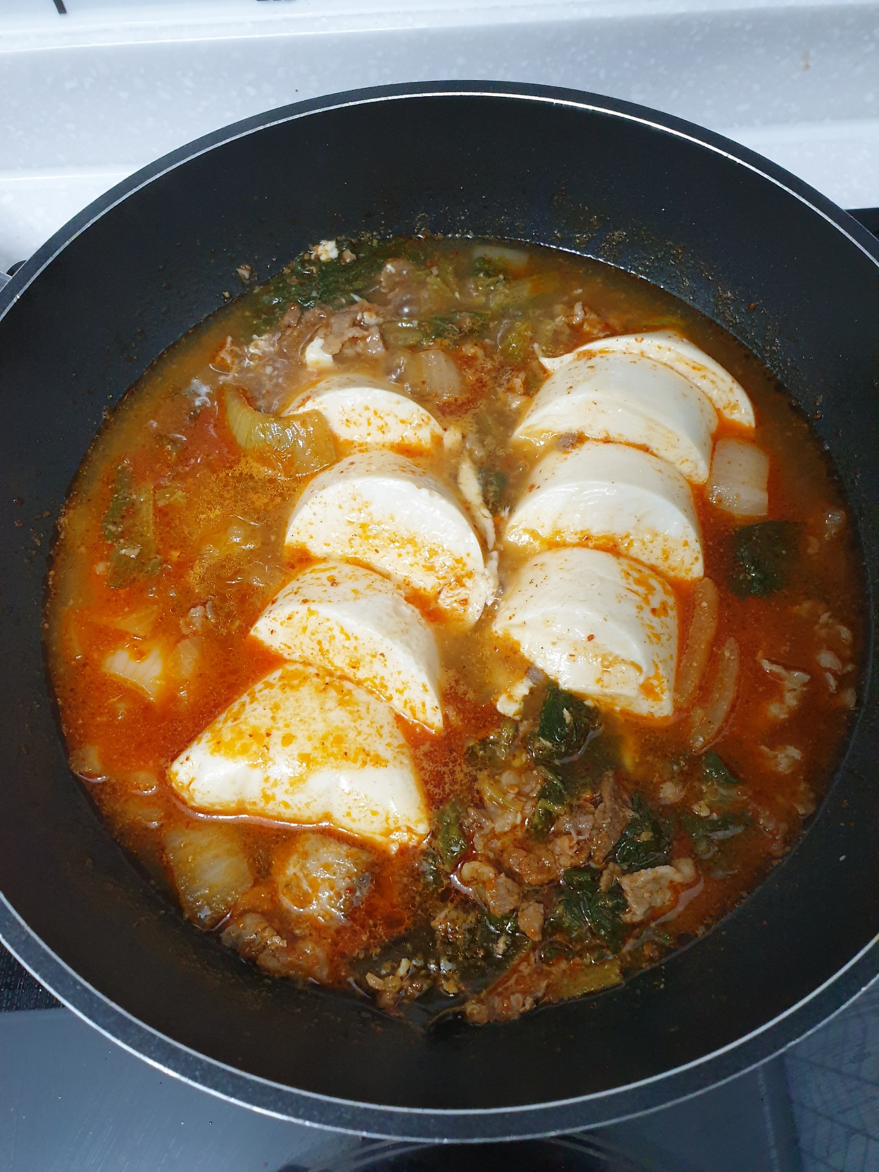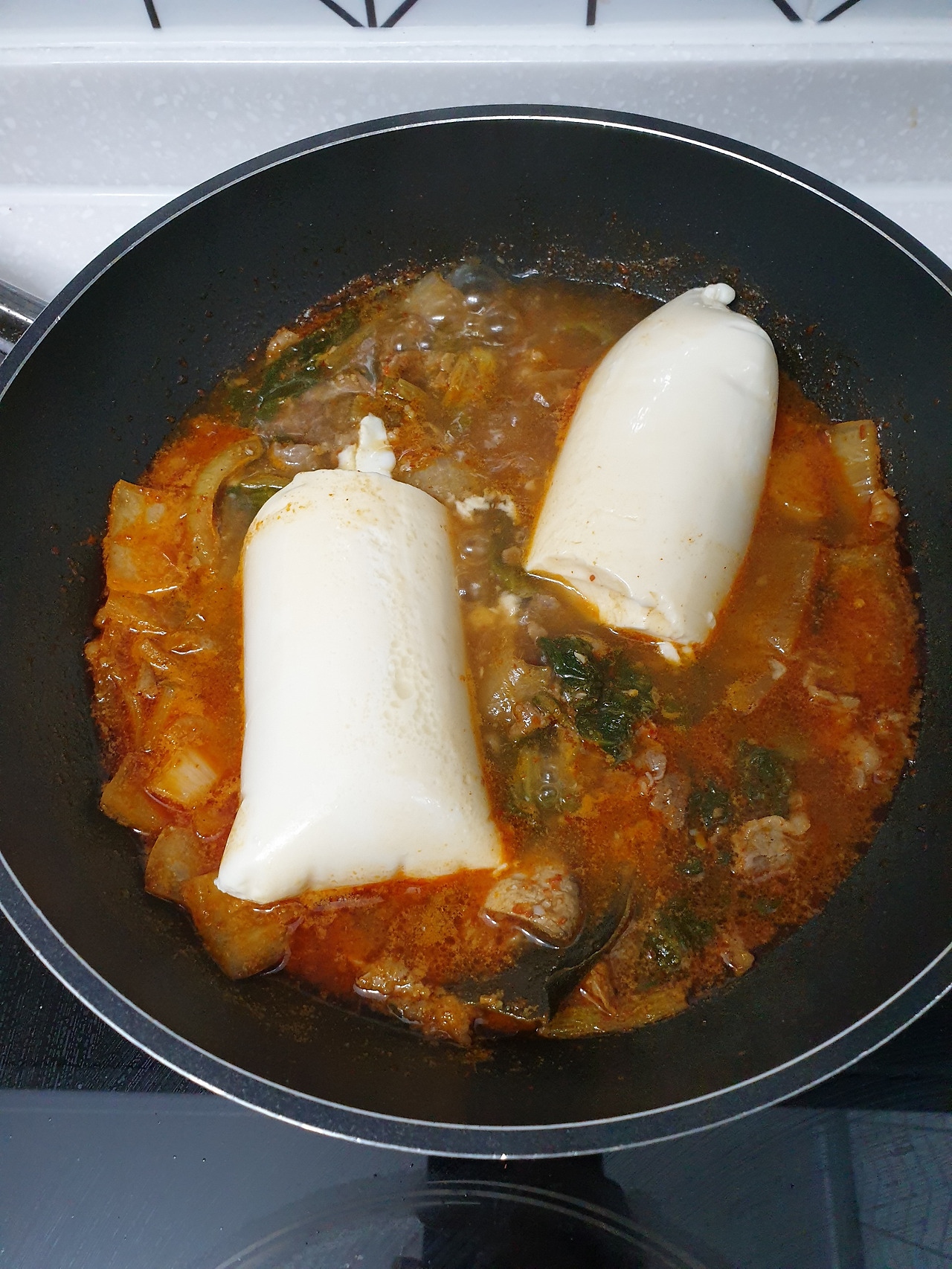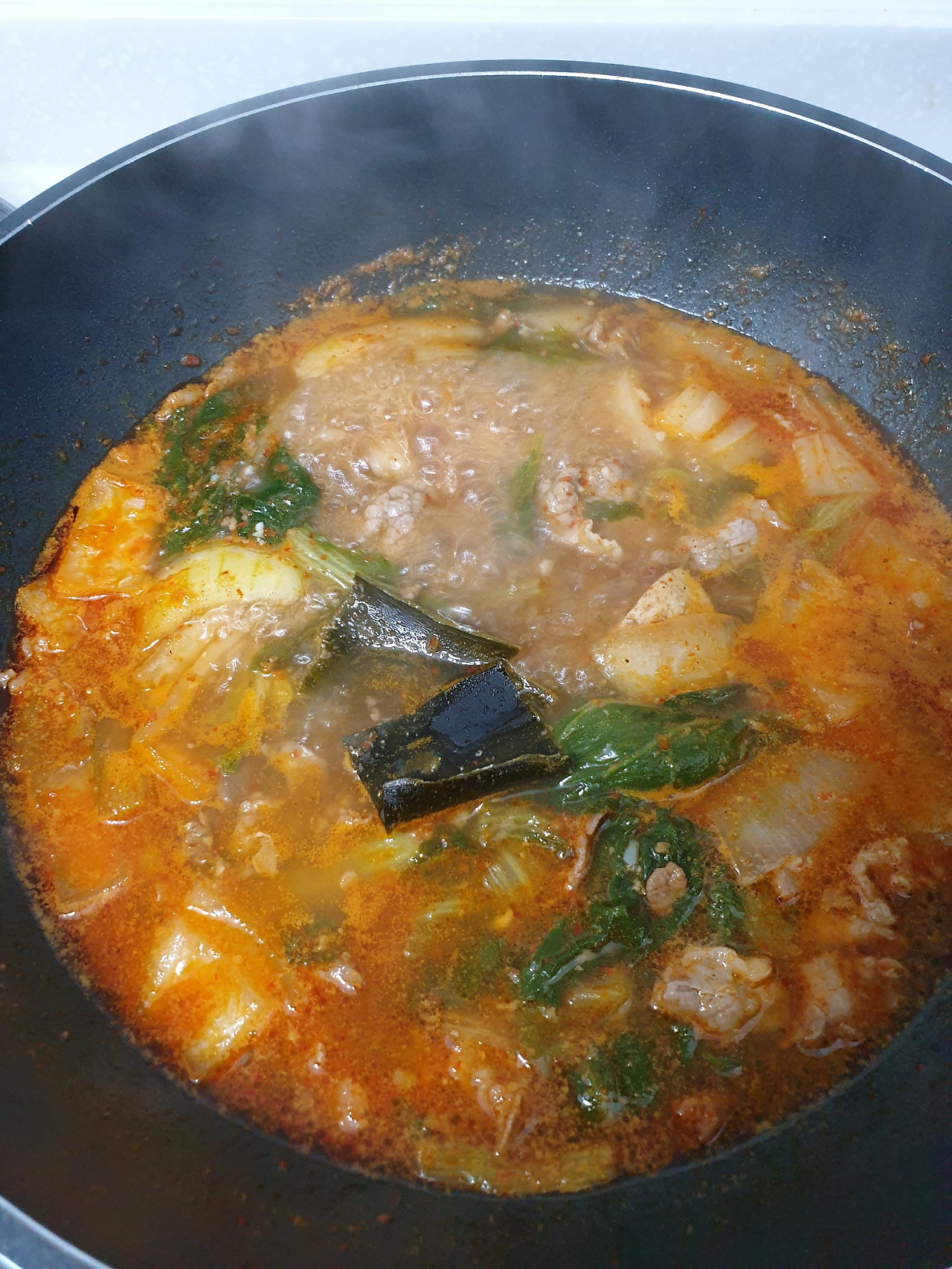 한소끔 끓여주면 뜨끈하고 속편한 순두부찌개 완성.