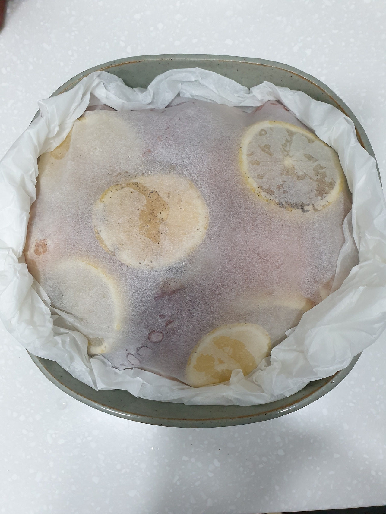 깔아준 종이호일과 같은 크기로 종이호일을 잘라서 덮어준다. 그리고 주머니가 되게끔 잘 말아 밀봉해준다. 이때 종이 호일이 찢어질 수 있으니 조심해야 한다.