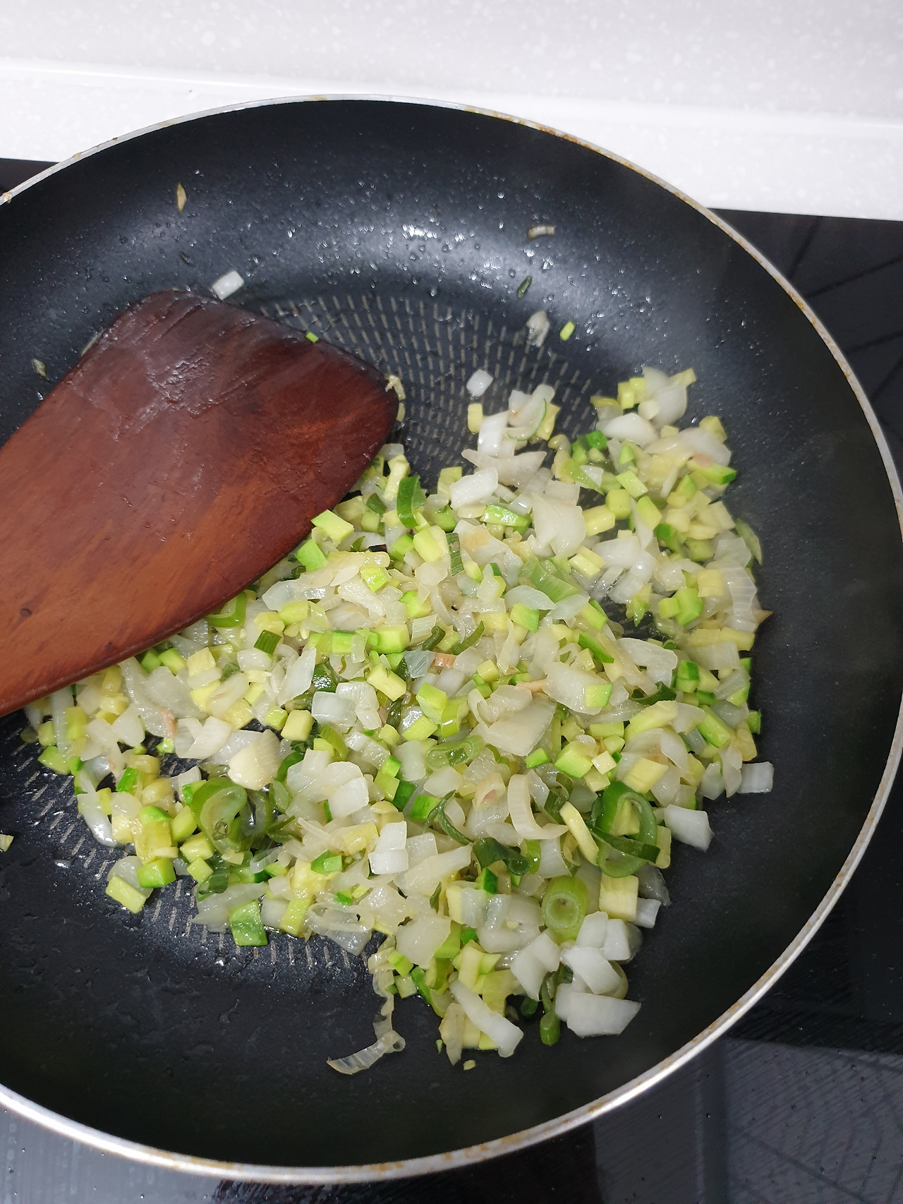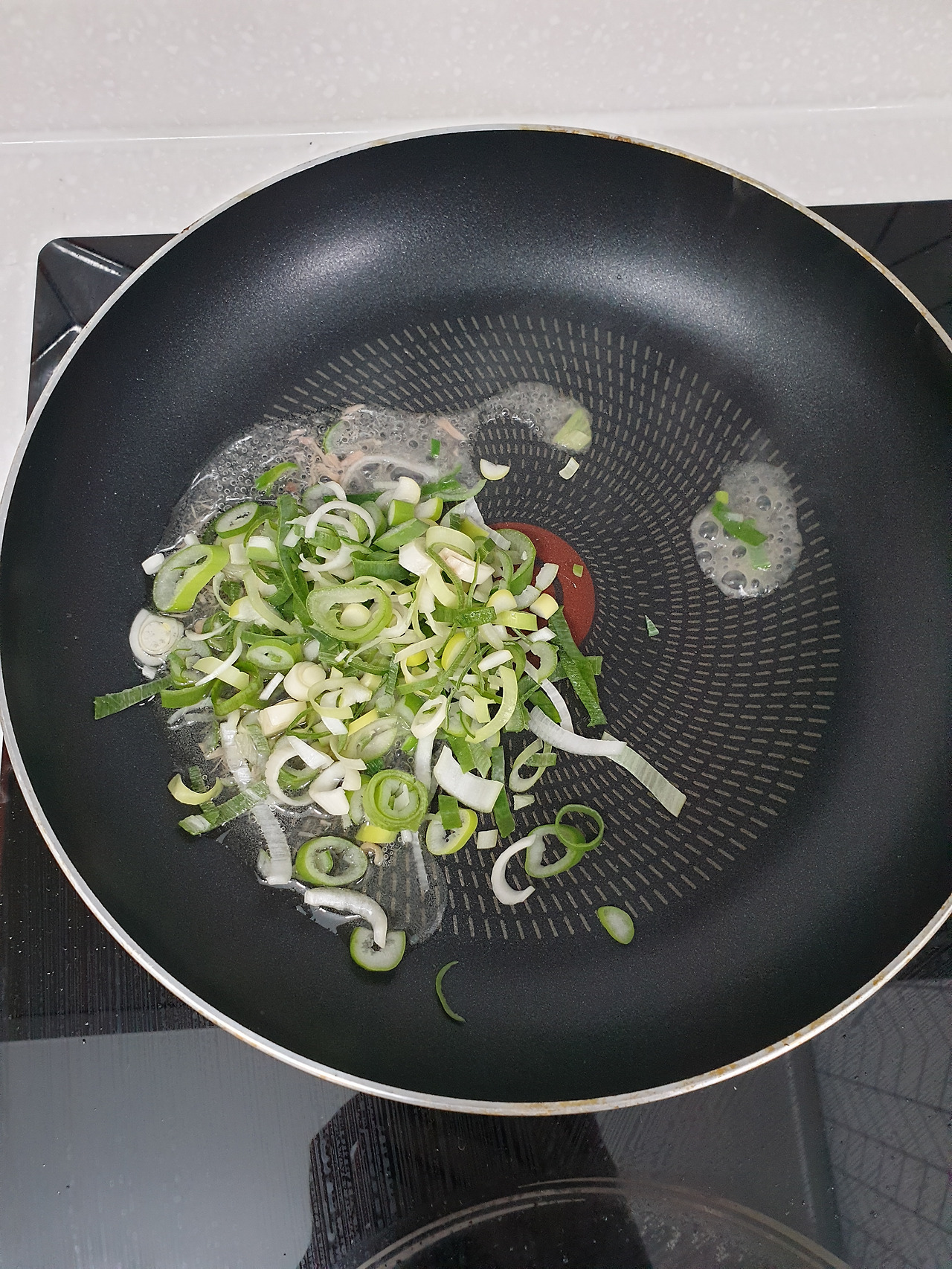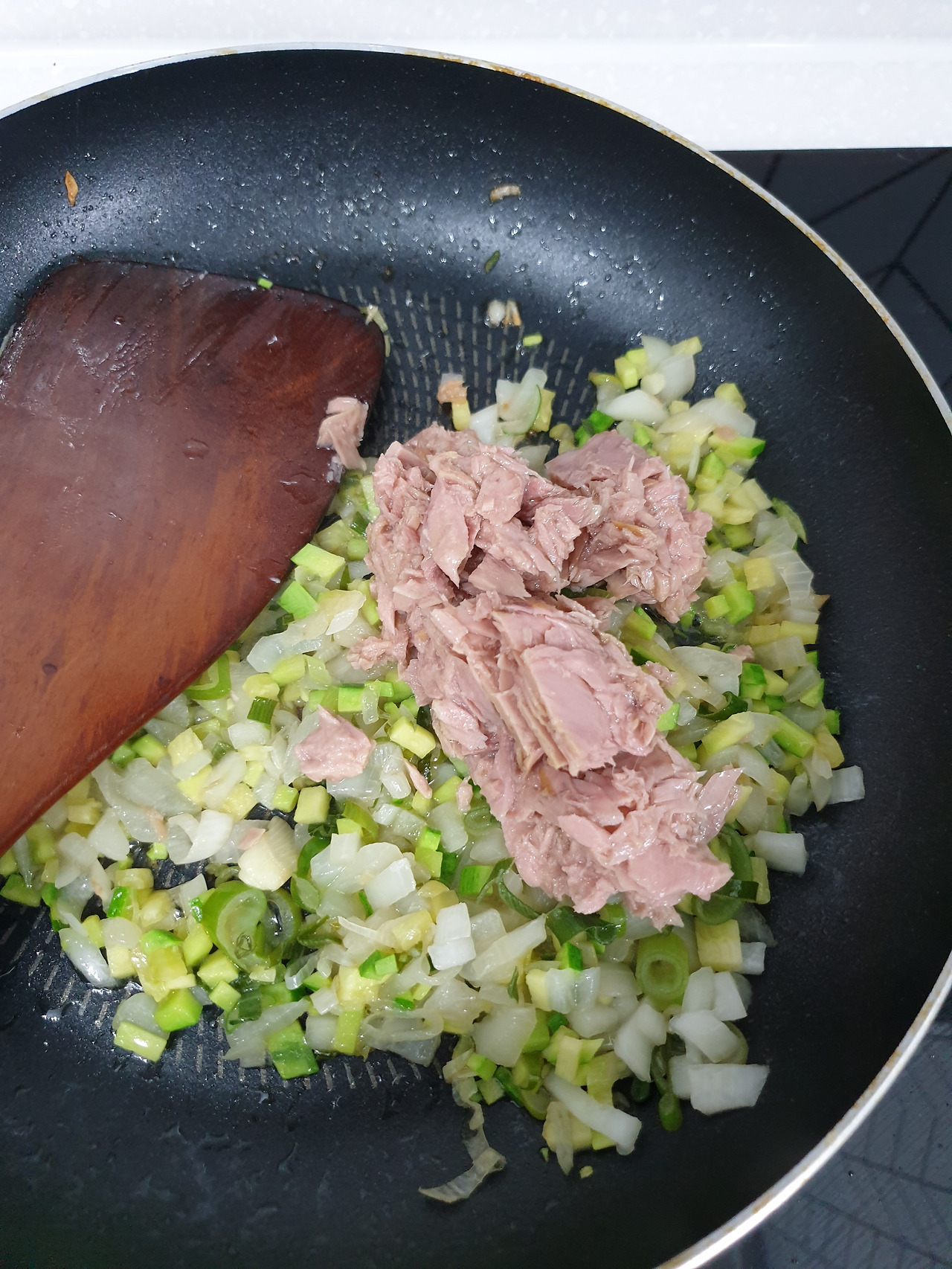 재료도 간단하다.애호박과 양파, 대파는 잘게 썰어준 뒤 참치기름과 대파를 팬에 볶아 파기름을 내준다. 불을 약하게 해야 파가 타지 않고 파기름이 충분히 나온다.