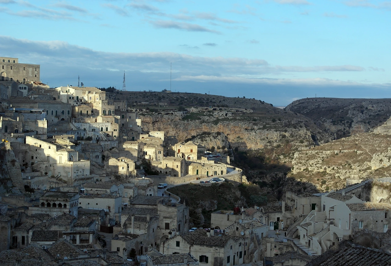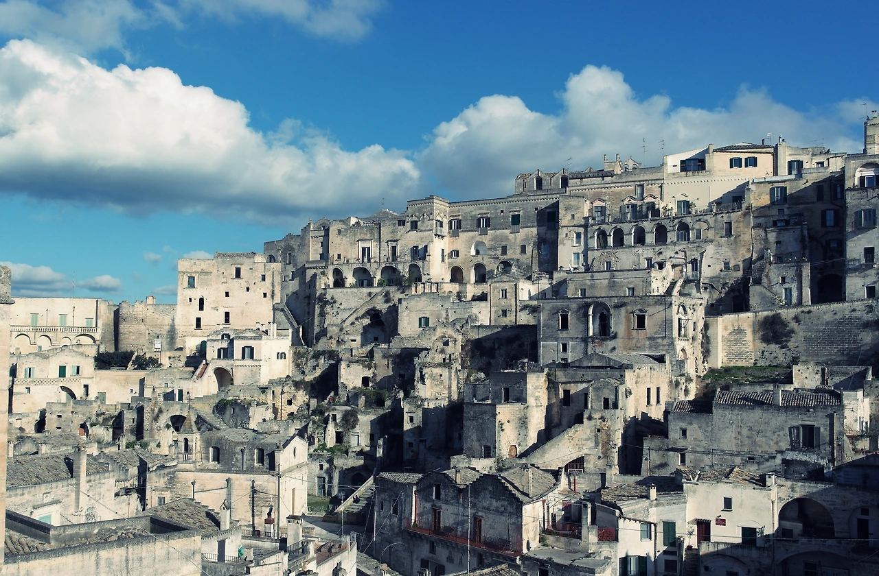 마테라에는 사씨 Sassi라는 동굴 주거지가 있다. 석회암을 파서 만든 동굴 집 사씨에 사람이 거주하게 된 시기는, 8세기경 이슬람 세력의 박해를 피해 이곳에 온 수도사들이 동굴 교회를 만들자 교회를 따라 농민들이 이주하면서부터이다. 사씨에서는 사람과 가축이 함께 생활했다. 당나귀, 닭, 개, 염소 등을 같은 공간에서 키웠으며 1960년대까지도 수도, 전기, 하수도 시설이 없었다. 이탈리아인들은 이 도시를 더럽고 가난한 반도 남부의 낙후성을 상징한다며 ‘제국의 수치’라 여겼다. 마테라가 외부의 관심을 받기 시작한 것은, 이탈리아 소설가 ‘카를로 레비’가 쓴 <그리스도는 에볼리에 머물렀다>라는 소설을 발표한 이후이다. 그는 마테라를 방문했던 경험을 바탕으로, 이탈리아 중산층이 외면한 이탈리아 농민의 비참한 생활을 실감나게 그렸다. 이로 인해 정부는 이 지역에 관심을 갖게 되고 생활터전의 열악함을 극복할 수 있도록 재건하기 시작했다.