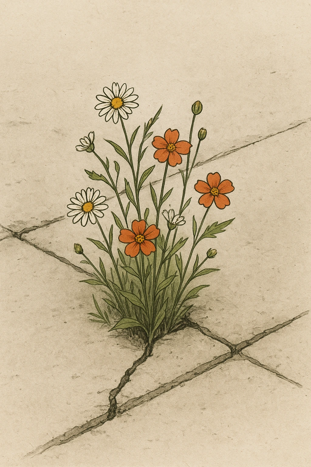 회색 콘크리트 틈새에서도 을 피우는 그 모습은 내 마음속 지친 공간에서 작은 빛이 자라나는 것과 닮았다.