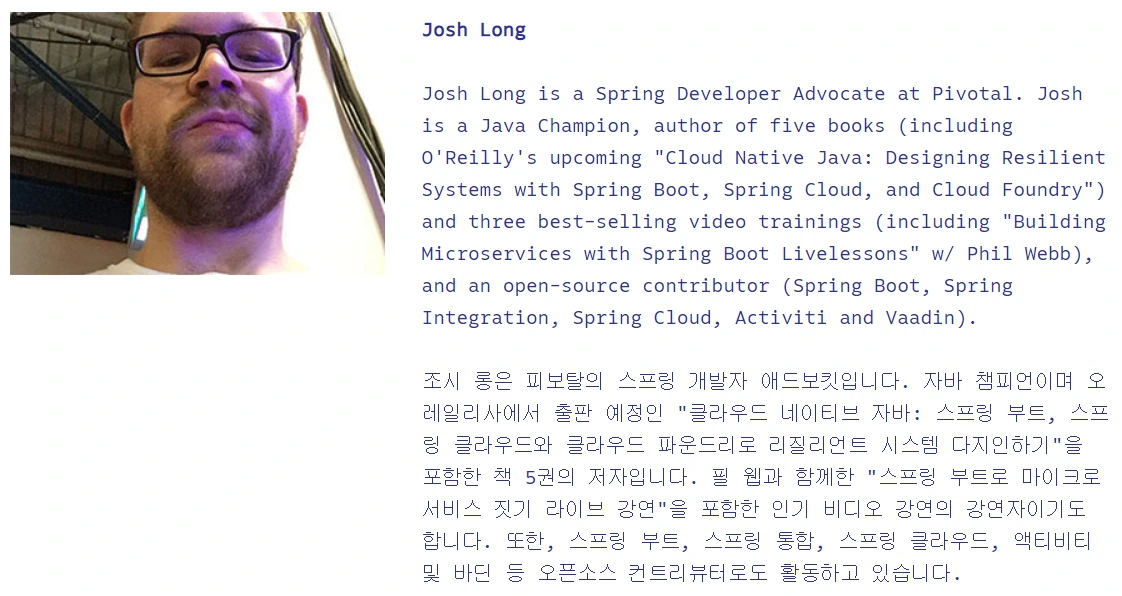 발표자는 너무나도 유명한 Josh Long(조쉬 롱) 이다.