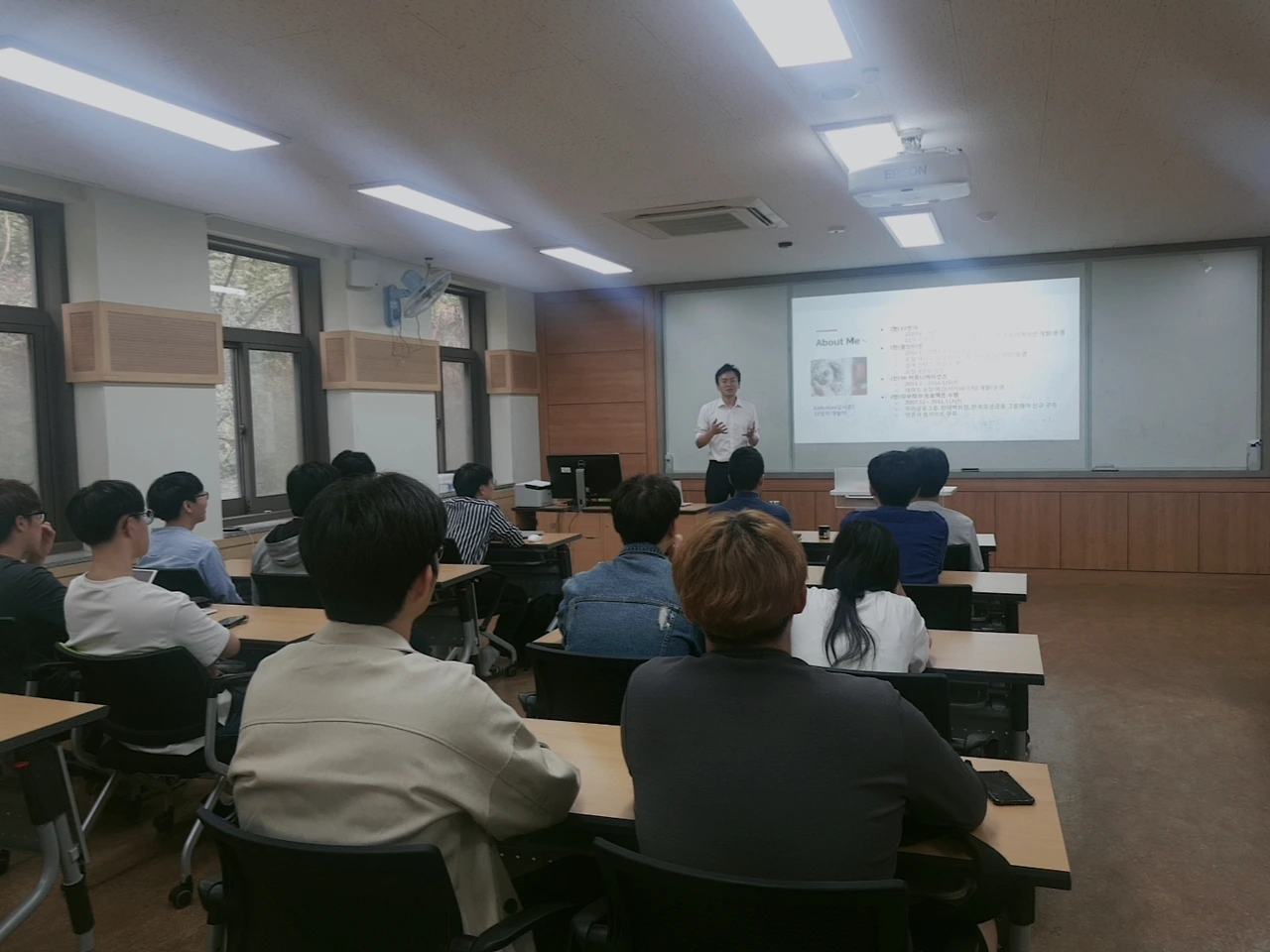 특강 일주일전에 급하게 받은 연락이었는데 마침 추석 연휴 직전이었다. 추석 연휴에는 와이프랑 같이 부모님 댁에 가서 하루 보내고, 그다음 날 와이프 처가댁에 다녀오니 너무 피곤해서, 특강 준비를 거의 하지 못했다. 남은 연휴 때 어느 정도 준비를 하였지만, 준비하기에는 너무 짧은 시간이었다. 특강을 하는 오늘을 위해서 이번 주에 월, 화, 수 매일 10시까지 야근을 하였다. 특강보다 회사 업무가 더 중요하기 때문에, 회사 업무에 문제가 되지 않도록 이번 주에 정말 열심히 일했는데, 체력이 너무 떨어졌는지 컨디션이 너무 좋지 않았다. 어쨌든 겨우겨우 특강 준비를 마무리하고 무거운 발거음으로 특강 당일 학교를 찾아갔다.