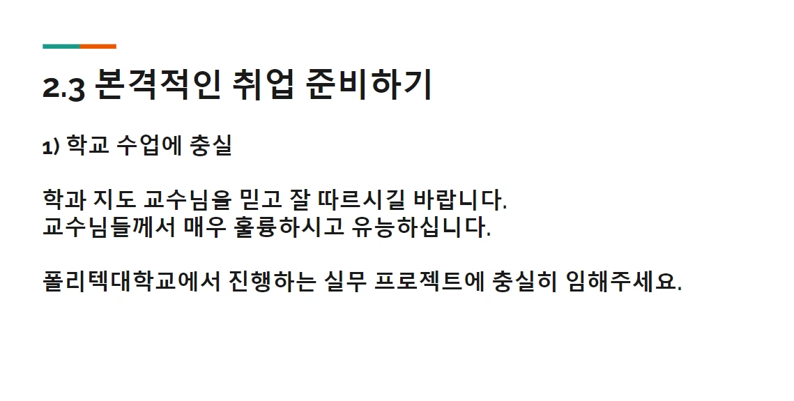 취업을 위해 필요한 정보에 대해서도 상세하게 전달하였는데, 준비했던 내용을 많이 빼먹었다.