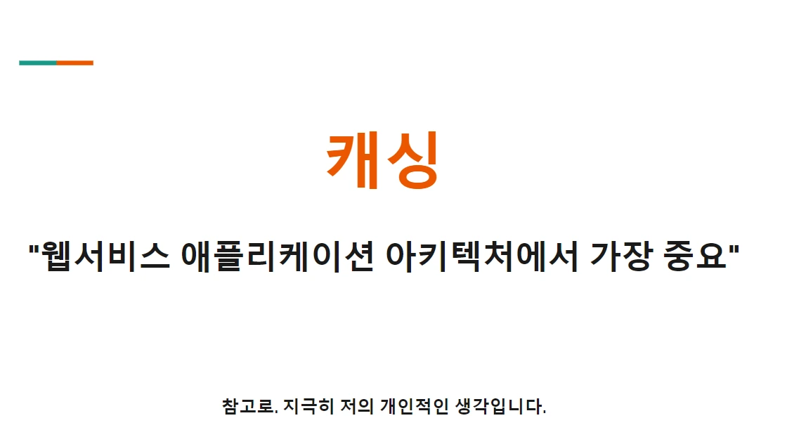 필자가 생각하는 가장 중요한 개념 중에 하나가 캐싱이라서, 학생들에게 캐싱이 무엇인지에 대해서 이해시켜주고, 웹서비스 애플리케이션에서는 어떻게 캐싱을 적용할 수 있는지에 대해서 많은 시간을 할애해서 설명하였다. 또한, 캐싱을 적용함에 있어서 발생할 수 있는 문제에 대해서도 설명하였고, 퀴즈를 푸는 시간도 가졌다.