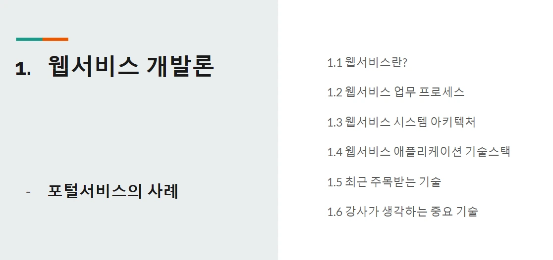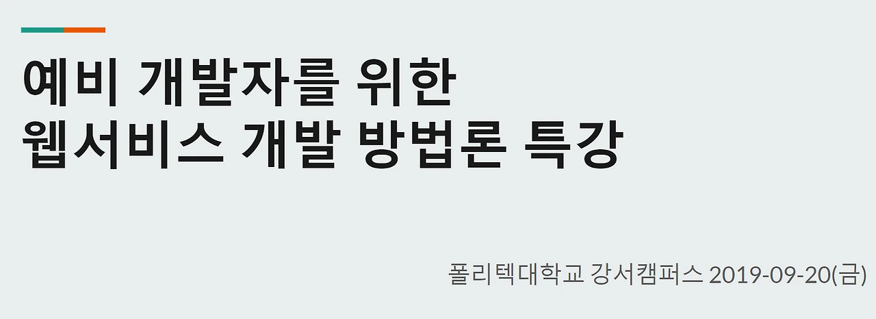 특강 주제는 "예비 개발자를 위한 웹서비스 개발 방법론 특강"이라는 주제로 진행하였다. 참고로 1주일밖에 준비를 못했기 때문에 PPT는 아주 간략하게 구성하였다.