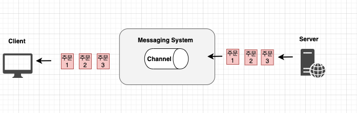 중간 시스템을 통해서 전송하기 때문에, 발신자(서버)는 데이터를 전송받는 수신자(클라이언트)에 대해서 전혀 알지 못한다. 메시지 채널만 알고 있으면 된다.