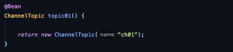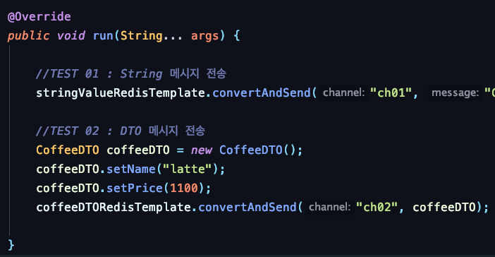 메시지를 발송하기 위해서 RedisTemplate 를 정의한다.