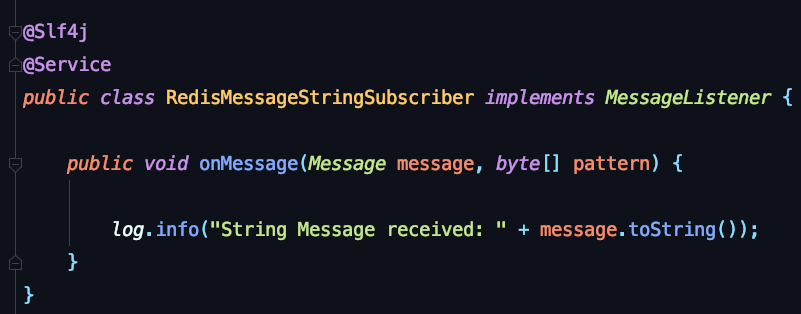 최종적으로, RedisListener 를 구현한다. 실제로 메시지를 수신하게 되면 처리하는 로직이다.