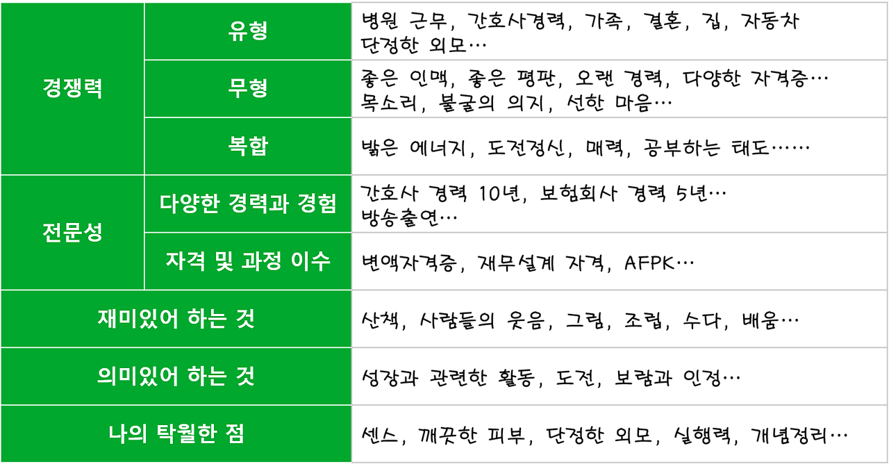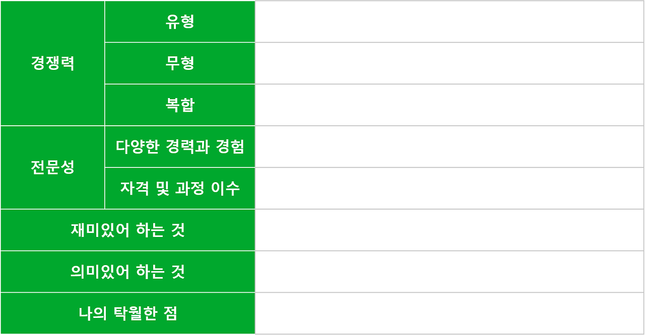 여러분도 환경, 사람, 책, 영화, 음악, 문화 등을 통해서 내 마음을 설레게 만드는 것들을 많이 접해보셔야 해요. 그렇게 자신에 대해 많은 통찰을 해야 나를 이해하고 내가 원하는 이미지로도 브랜딩 할 수 있습니다. 그에 도움 될만한 시트를 제공해드릴 테니 한번 작성해보시면서 스스로 통찰의 시간을 가져보세요.