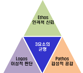아리스토텔레스는 인간을 설득하는 세 가지 요소로 로고스(논리), 에토스(성품), 파토스(공감)를 제시했는데, 한 가지씩 살펴볼게요.