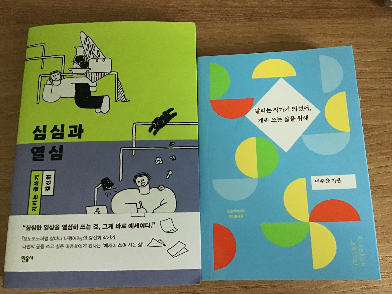 심심과 열심. 제목과 책 소개를 보는 순간 구입하지 않을 수 없었습니다. 어떤 것은 구입하는데 몇 년을 고심하기도 하는데, 이런 것은 눈에 띄자마자 사버리니 내 삶에 무엇이 긴밀하게 연결되어 있는지가 확연히 보입니다. 어제는 김치님 작업실에 놀러 갔었어요. 만날 때마다 무형과 유형의 것들을 아낌없이 나누어주시는 김치님께 어제도 선물을 가득 받아왔습니다. 김치님께서 주신 이주윤 작가의 "팔리는 작가가 되겠어, 계속 쓰는 삶을 위해"라는 책 역시 글쓰는 삶에 대한 이야기입니다. 매우 웃기고 술술 읽혀요. 비록 글쓰기가 더디고 괴롭더라도 글쓰기를 읽는 시간만큼은 행복합니다. 그것이 위안이 되는 주말입니다. '나는 왜 글쓰기가 즐겁지 않지?'하는 고민은 이제 그만 내려놓으려고요. 세상에 다양한 사람이 있듯이 다양한 글쓰기가 있다는 것을 아주 천천히 버겁게 받아들이는 중입니다. 즐겁지 않은 글쓰기, 즐겁지 않아도 계속하는 글쓰기가 있다는 것을 인정하려고 합니다. 내 마음이 편안하지 않은데 글쓰기만 편안할 리 있을까요. 나를 좀 더 편하게 해주면, 언젠가 가볍게 펜을 들지도 모르겠습니다.