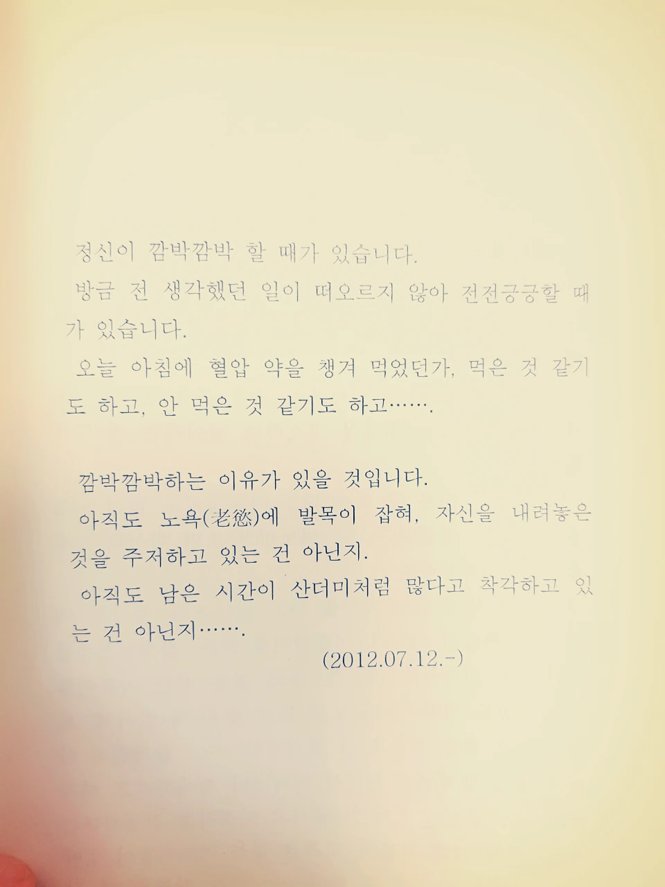 아버지는 당신의 책에 대고 자신이 ‘귀가 먹었고, 사람이 좀 멍청해졌다’고 쓰셨다. 하지만 조금은 멍청해져도 살 만할지 모른다. 너무 똑똑하면 자신의 ‘나이 듦’도, 자꾸만 깜빡깜빡하는 기억력도 용서하기 힘들 것이다. 사람이 좀 멍청해야 나이 드는 데 무뎌지고 세상도 살 만하리라.