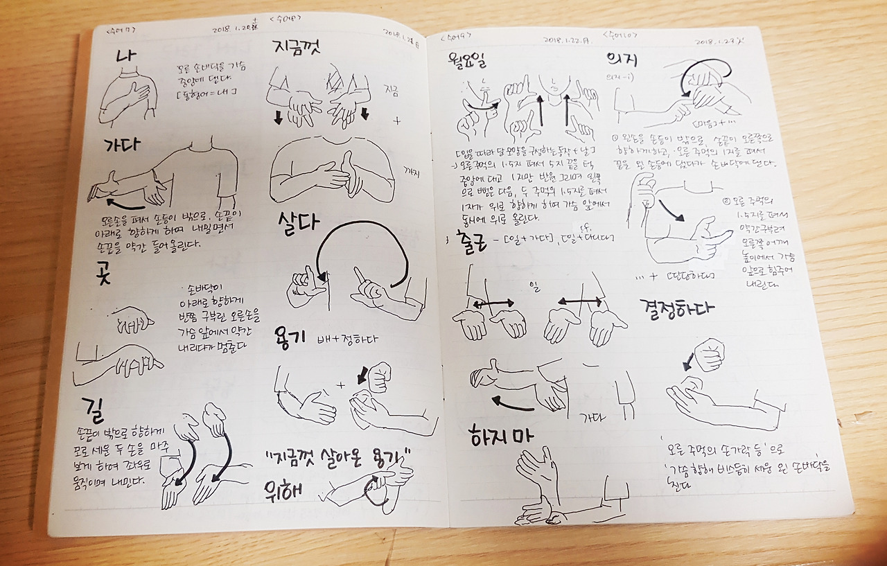 내 모어는 수화다. 뜨개질하듯이 손으로 말을 엮는 게 좋고, 서로의 눈과 입술을 보며 집중하는 게 좋다.(7)