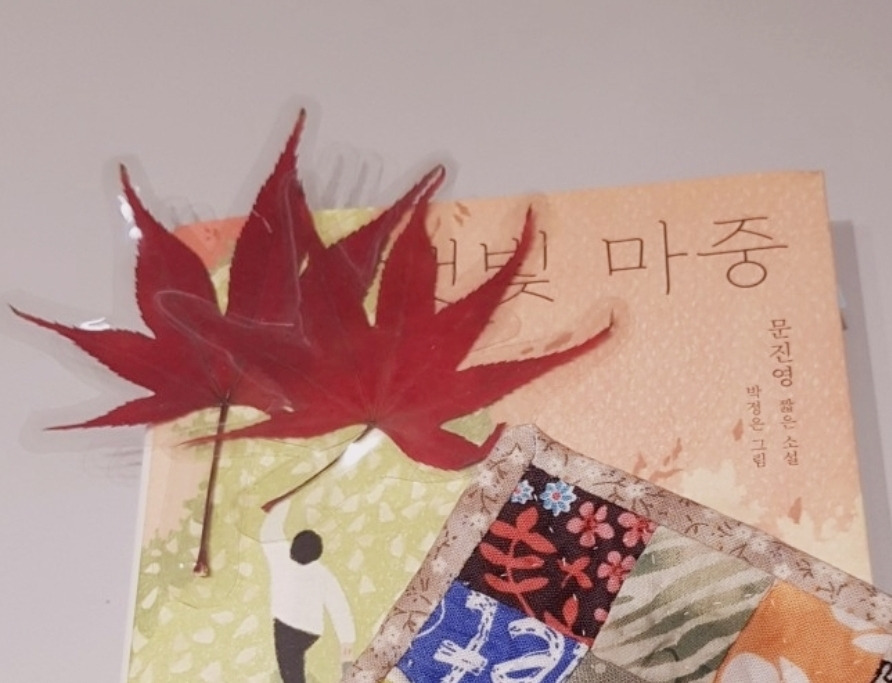 좌측 나무 책갈피는 예뻐서 숨멎.. 우측 단풍 책갈피는 친구가 직접 주워다 코팅까지 해 준 책갈피♡