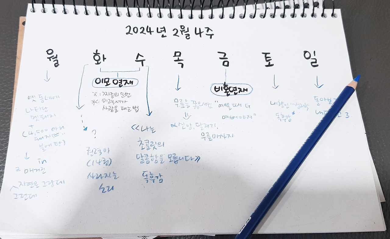 자, 그럼, 이번엔 내다보기. 2월 5주 차, 무엇을 써 볼까!