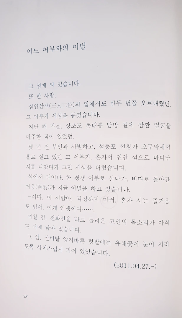 섬에서 태어나 한평생 어부로 살다가, 바다로 돌아간 어옹(漁翁)과 지금 이별을 하고 있습니다.