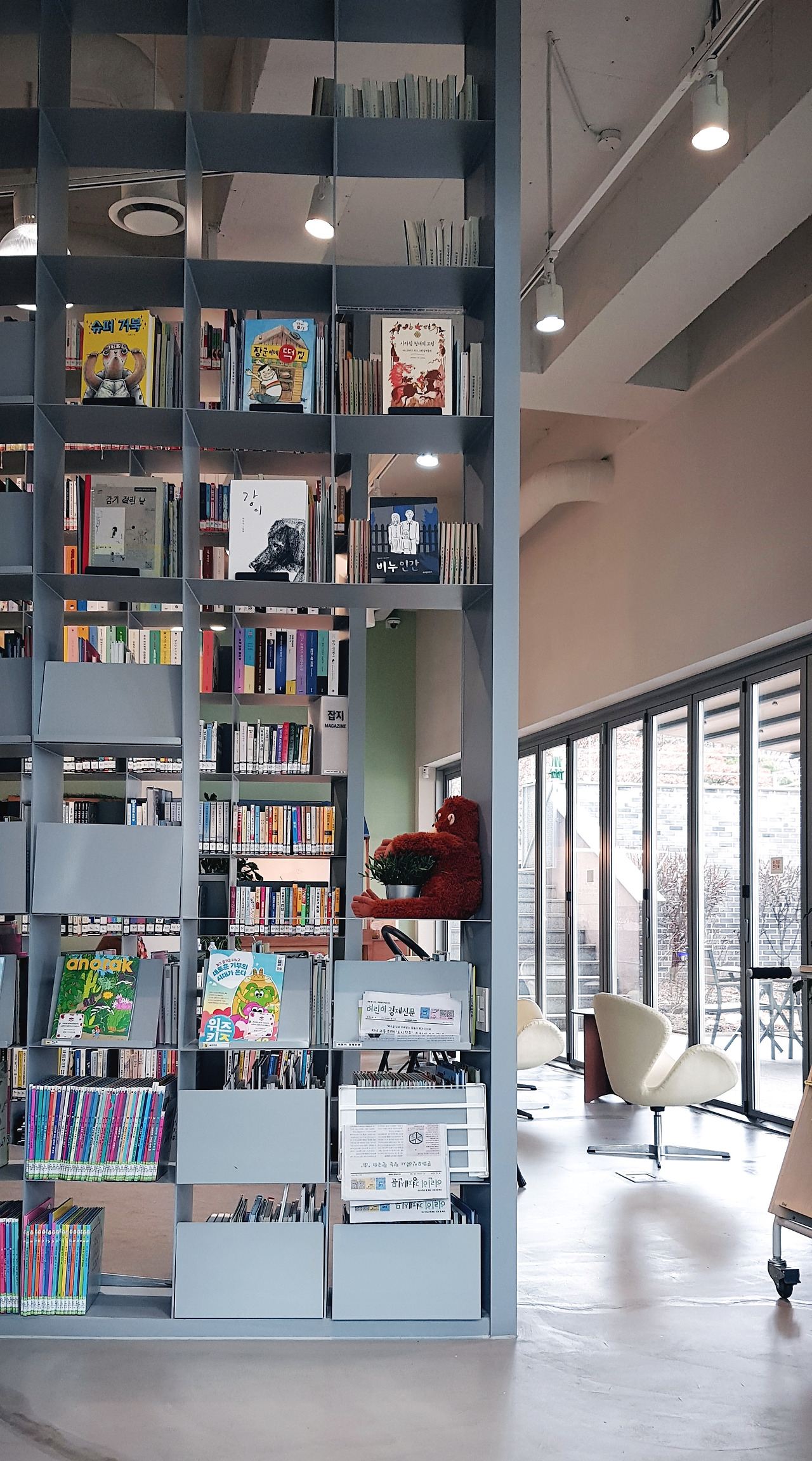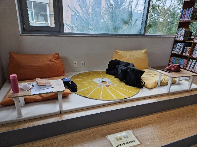 나 자신에게 아쉽다. 1층에서 즐기느라 다른 층을 가 보지를 않았던 것이다! 3층이 무려 청소년자료실이었는데 1층에서 놀다 시간이 다 흘러 버렸다. 하지만 그런데도 혼자 대만족~! 아, 참. 엄청 넓은 편은 아니라서 책 볼 공간이 막 넘칠 정도는 아니었다. 그건 살짝 아쉽긴 하다.(1층 한정 이야기임.) 그래도 생각보다 책이 매우 많아서 눈도 마음도 즐거웠다.