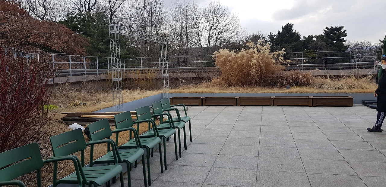 2) 도서관 외부 공간: 옥외는 테라스와 텃밭, 공연장이