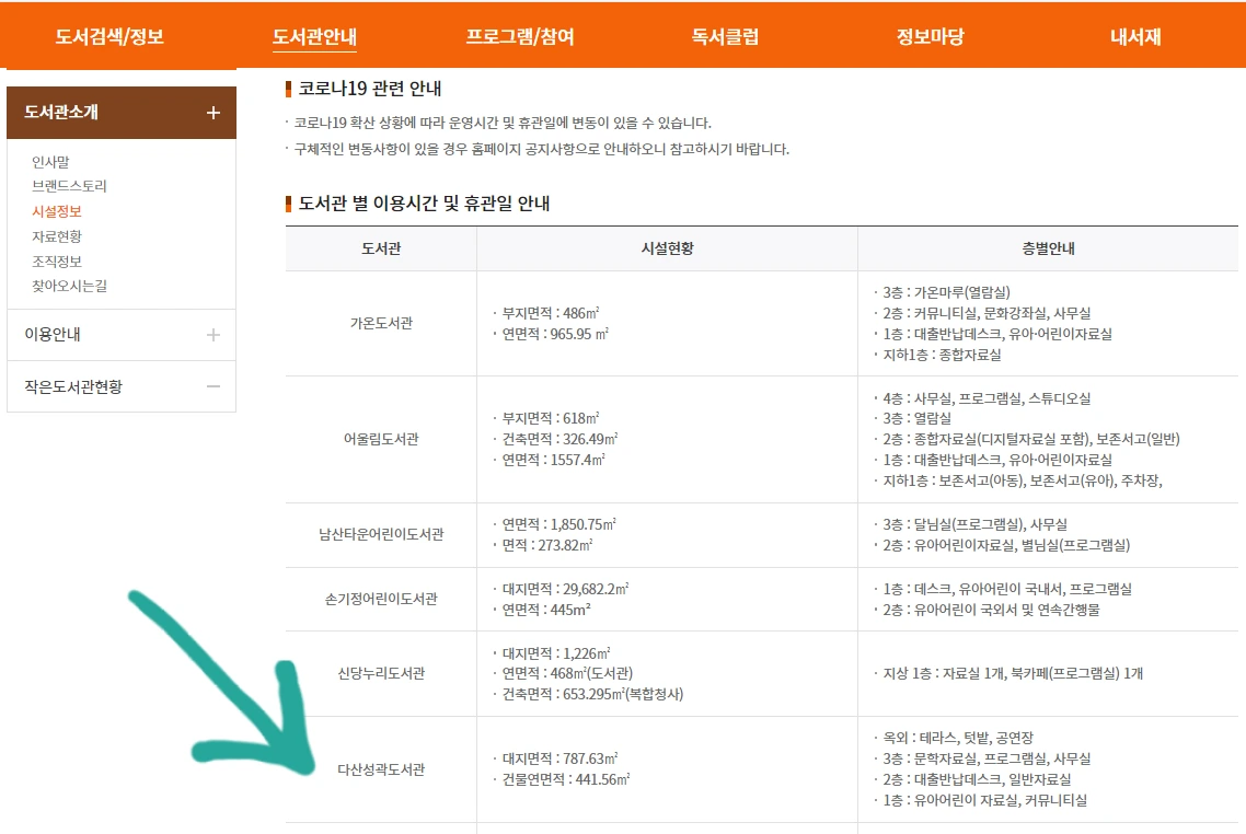 5. 시설 및 운영 시간: 평일 및 주말 9:00~22:00(휴관일: 매주 월요일 및 법정 공휴일) 아래 그림 참조.