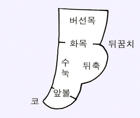 버선은 사시사철 신어도 좋겠지만 특히나 내 입장에선 겨울에 안성맞춤으로 어울린다. 혈액순환이 잘 안 되고 평생 손발이 차가웠던 나. 엄마의 지혜 덕분에, 그리고 버선의 온기 덕분에 겨우내 따듯했다. '버선목'이 상당히 높은 곳까지 발을 감싸 주어 시린 지 모르고 겨울을 보냈다.