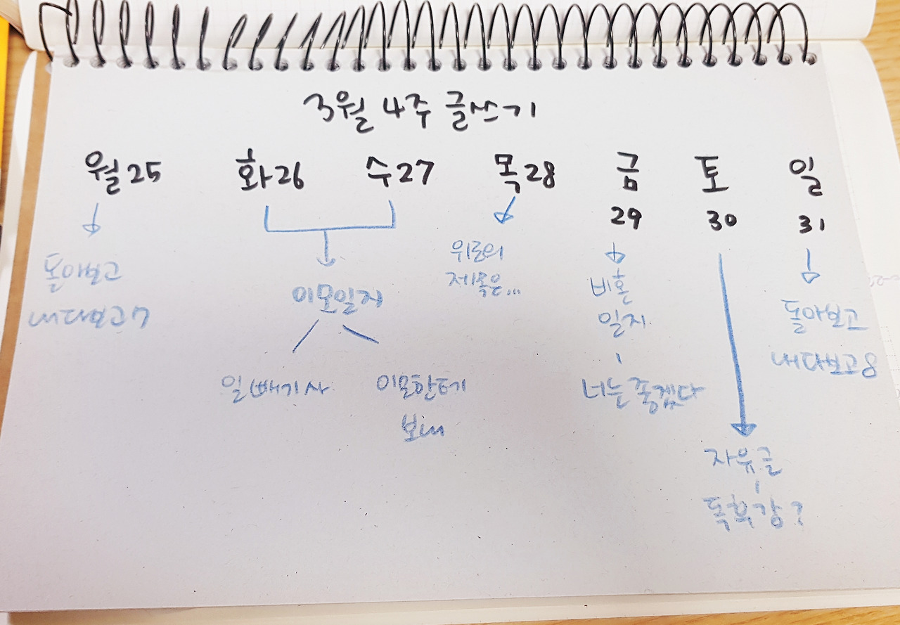 3월 4주 차에는~ 오 놀라워라, 7개의 글을 다 쓰긴 썼다. (이모일지