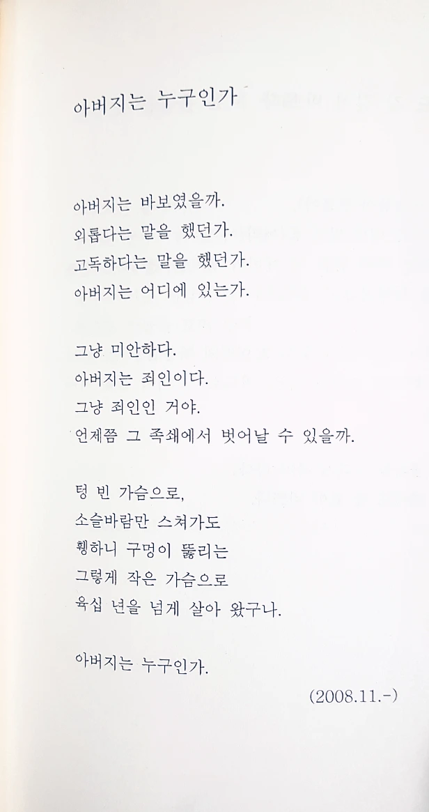 휑하니 구멍이 뚫리는 그렇게 작은 가슴으로, 육십 년을 넘게 살아왔구나.