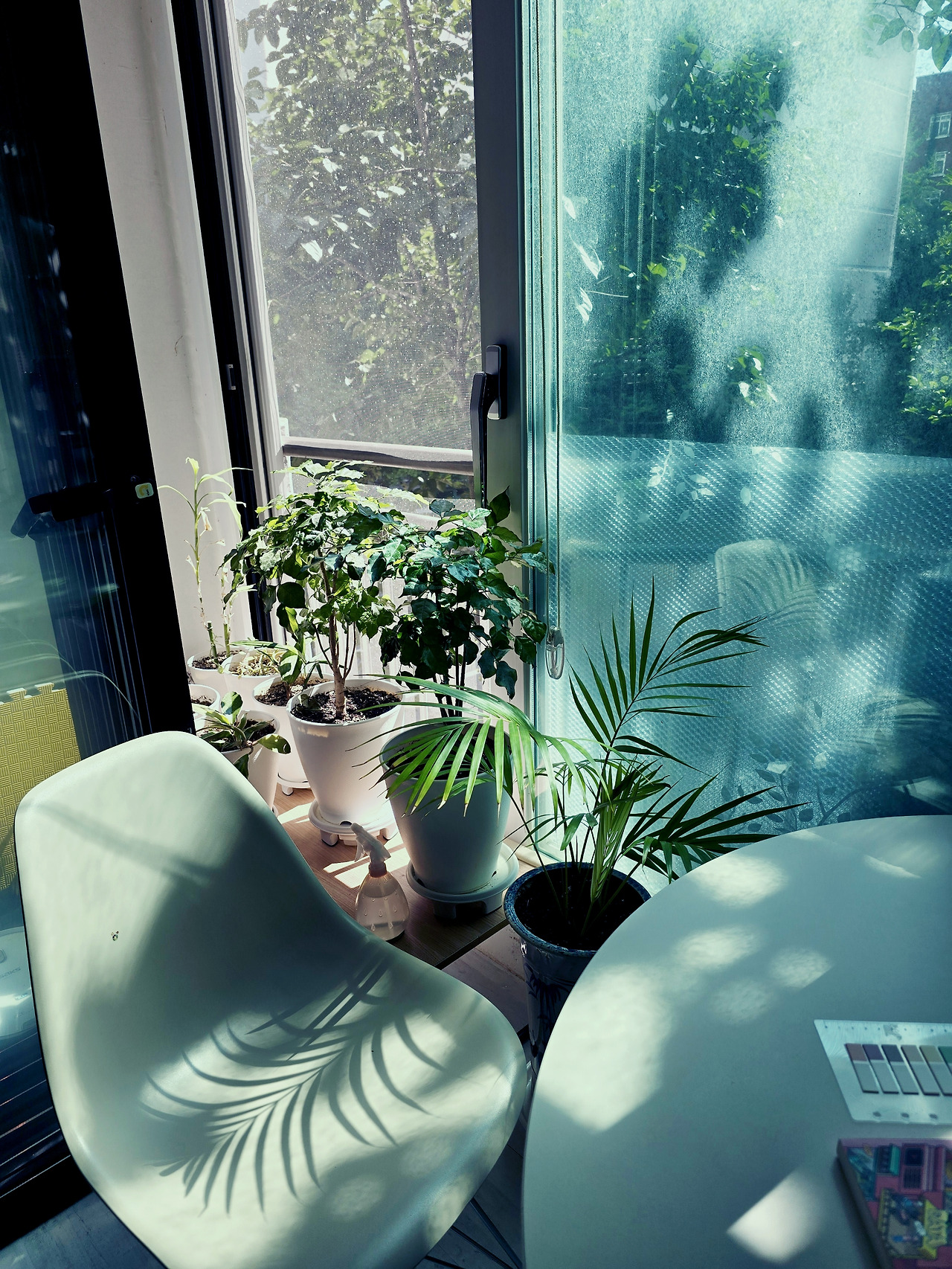 햇볕은 창문 틈을 뚫고 들어와 식물들에게 살아갈 힘을 주었고, 화분 옆에 놓인 의자에는 아름다운 그림자를 그려 주었다. 자기 혼자서만 오는 햇볕은 없었다.
