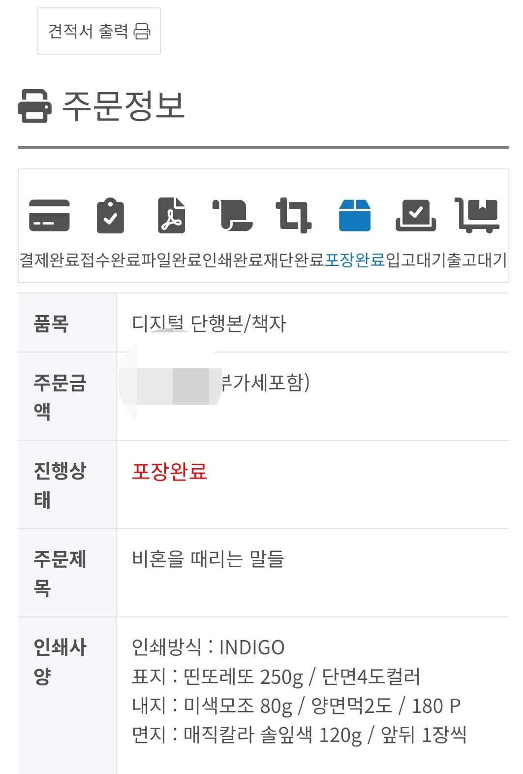 일어나자마자 가제본한 책의 '진행 상태'를 확인했다. 인쇄 완료? 오오 그럼 인쇄 됐으니 거의 다 된 거 아니야?