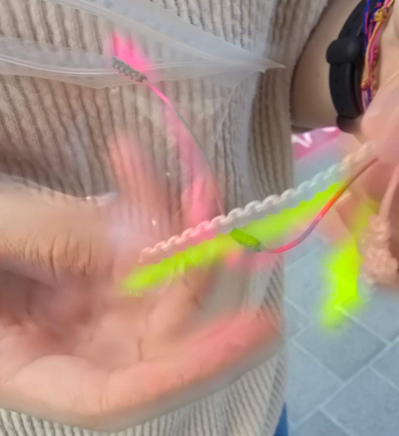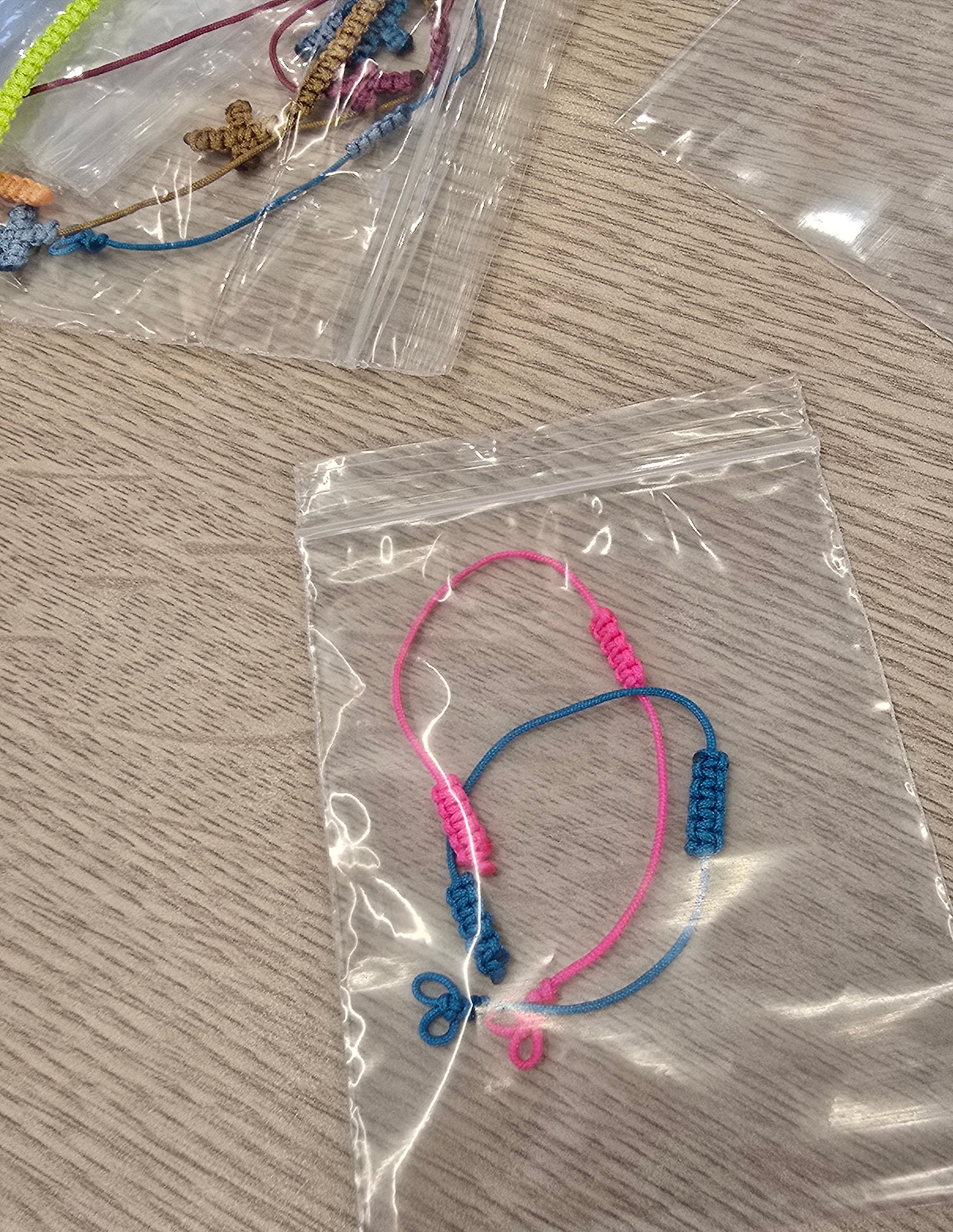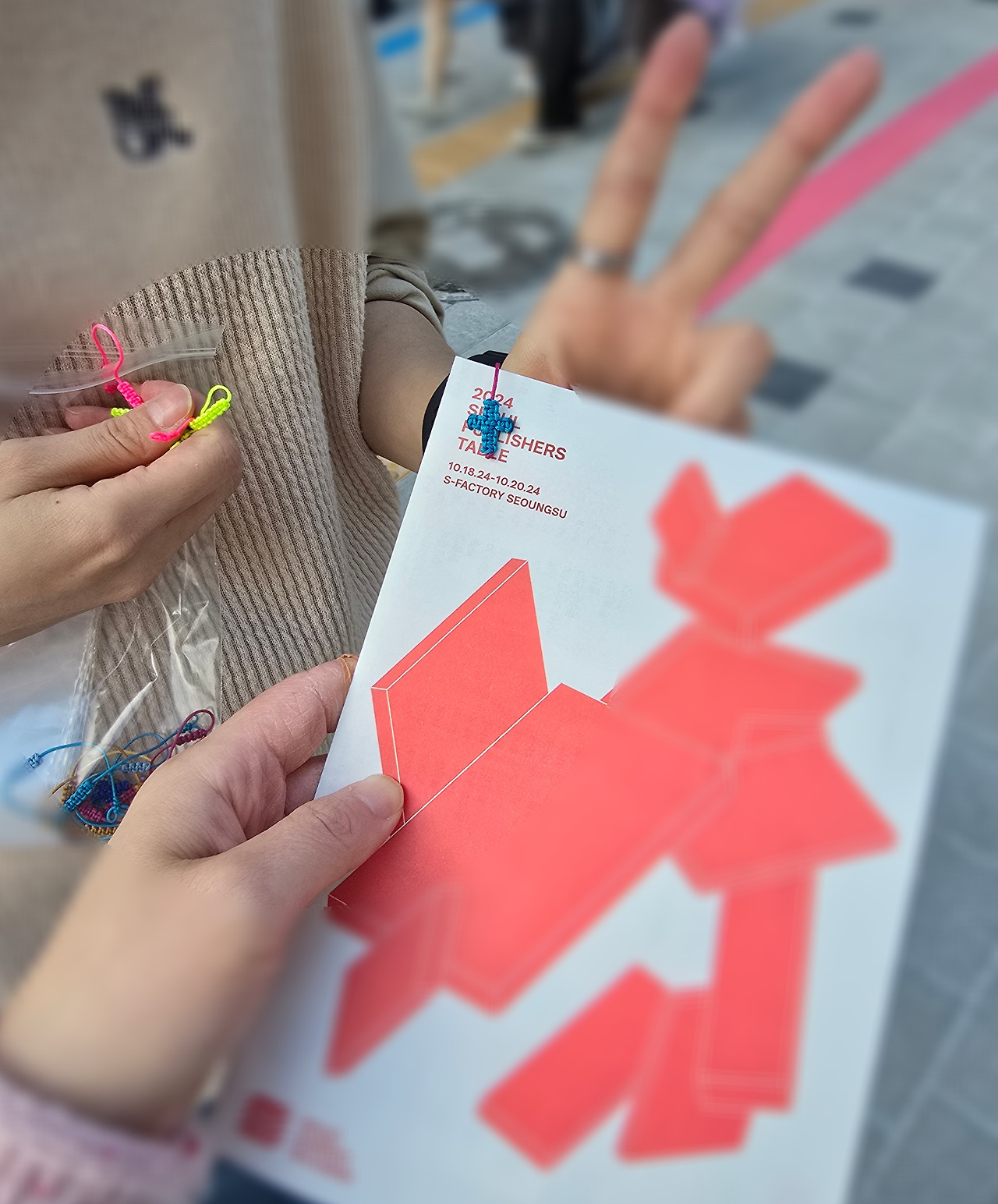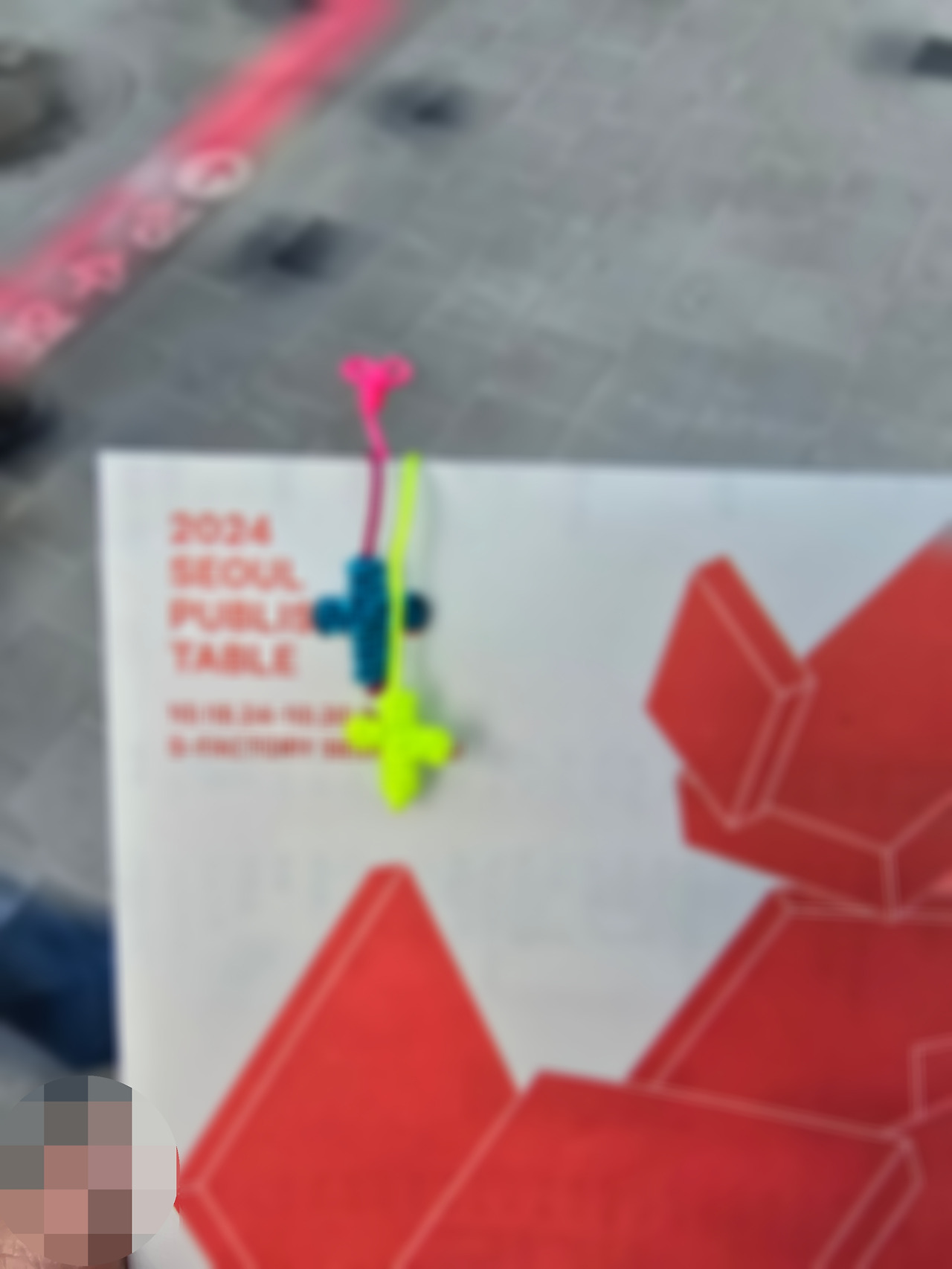 아니 이거(수제 매듭 책갈피)를, 사람들이 언니 책 사 갈 때마다 주라고 하려고... 오늘 오전까지 계속 만들어서 딱 왔는데, 와 보니 언니가 없는 거야! 서프라이즈로 오려고 했는데!