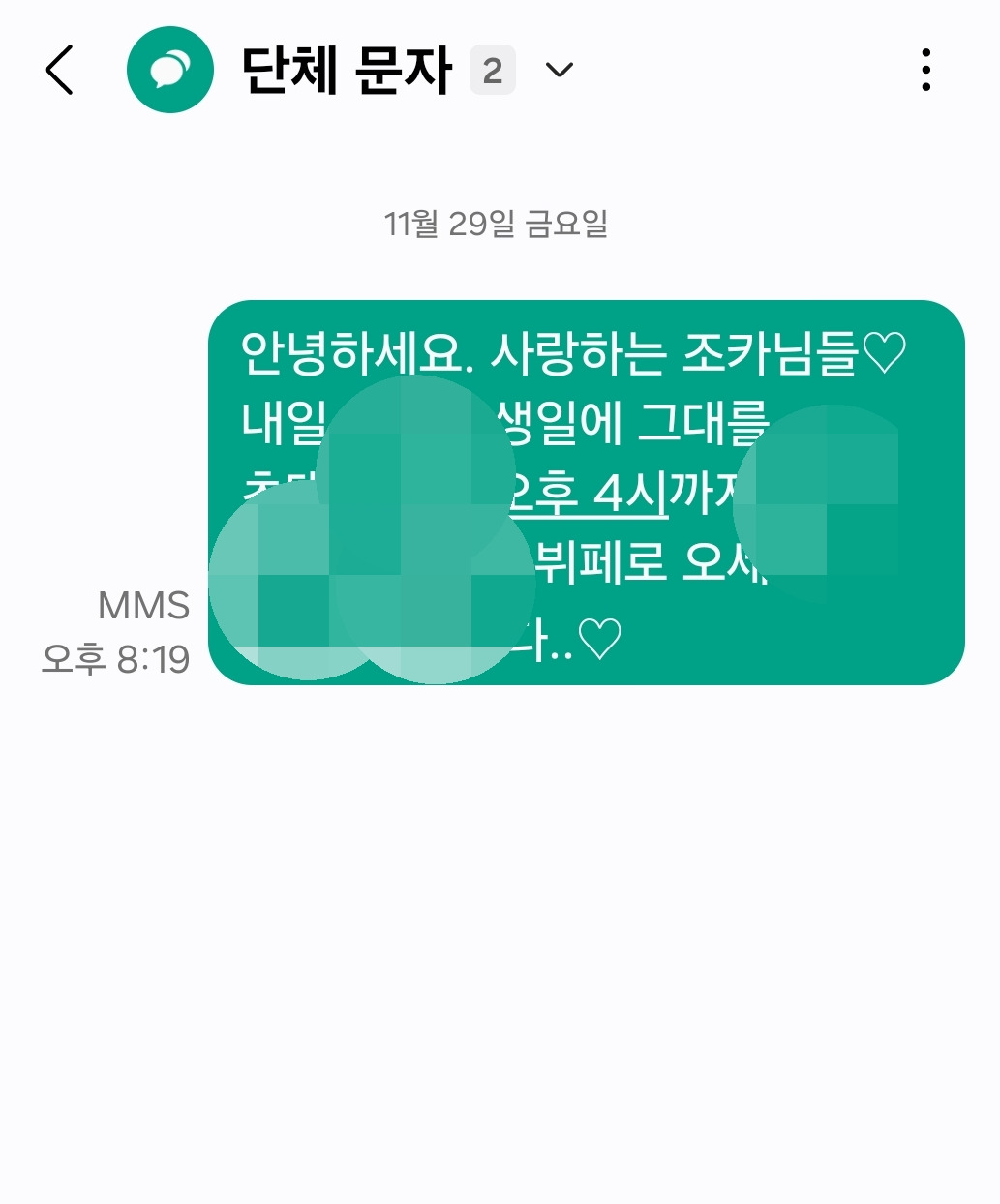 십몇 년 전 일이다. 청소년 친구들의 끊임없는 축하, 동네 친구들과 학교 친구들, 그리고 직장 동료들. 심지어 어디엔가 던지고 다닌 연락처 때문에 치과나 은행, 센터 등에서도 온종일 축하를 보내던 날이 있었다. 쏟아지는 축하 인사로 내내 답장을 보내느라 분주했던 지난날이 떠오른다.