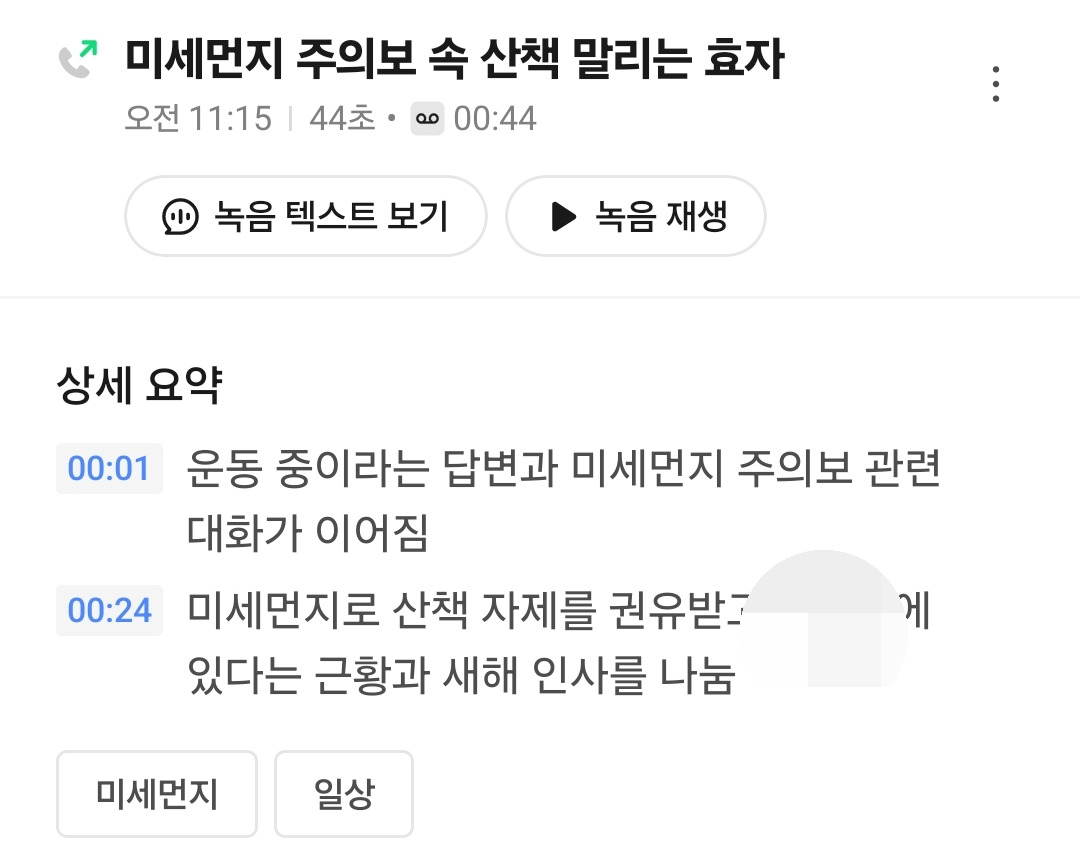 굳이 요약해 줄 필요는 없는데 요즘 자꾸만 내 통화를 요약해 주는 스마트폰. 그 덕분에 나는 효자가 되었다.