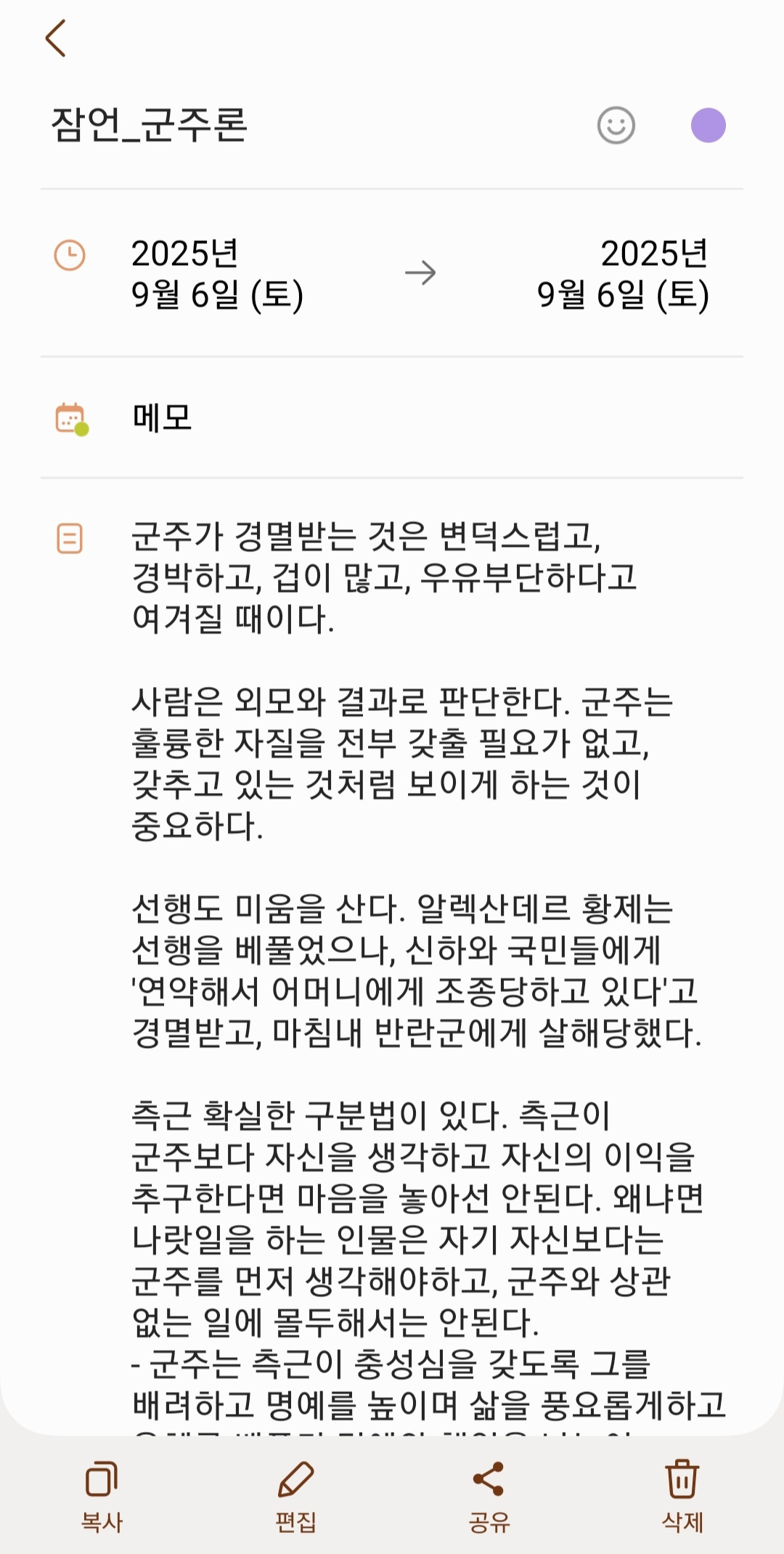 아래는 당시에 매월초 <마키아벨리의 군주론>을 발췌하여 읽었던 문장이다.