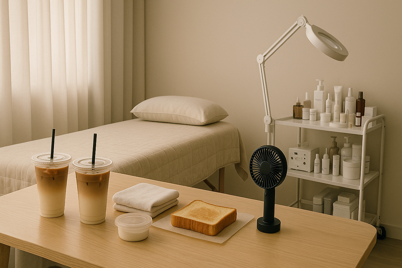 연차를 쓴 한여름의 월요일 아침, 아이스 카페라떼 두 잔을 사서 에스테틱 샵으로 이동했다. 가방에서 손수건을 꺼내 땀을 닦고, 손에서만 도는 아이스의 시원함, 뜨거운 바람 속에 손풍기, 그리고 아침에 산 따끈한 우유식빵의 여운까지. 문득 이런 소소한 순간들이 내 하루를 채우고 있다는 생각이 들었다.