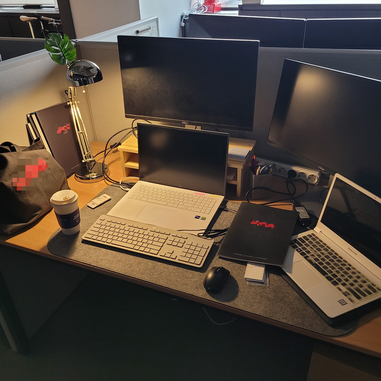 지난날 다른 회사들과의 퇴사를 생각해 보았다. 여러 회사를 다녀서 그런지 사진첩에는 내 사진은 없고 내가 쓰던 책상 사진들만 있었다. 20대에는 큰 의미를 두지 않아서 사무실 책상을 찍어두지 못했던 것 같다. 이제는 사진을 찍어둘 만큼 의미 있는 곳이라고 생각한다. 그래서 퇴사 전날 사진을 찍어두었다. 이 한 장으로 어떤 위치인지는 설명할 수 없다는 걸 알지만, 또 다른 기록을 남겨보았다.