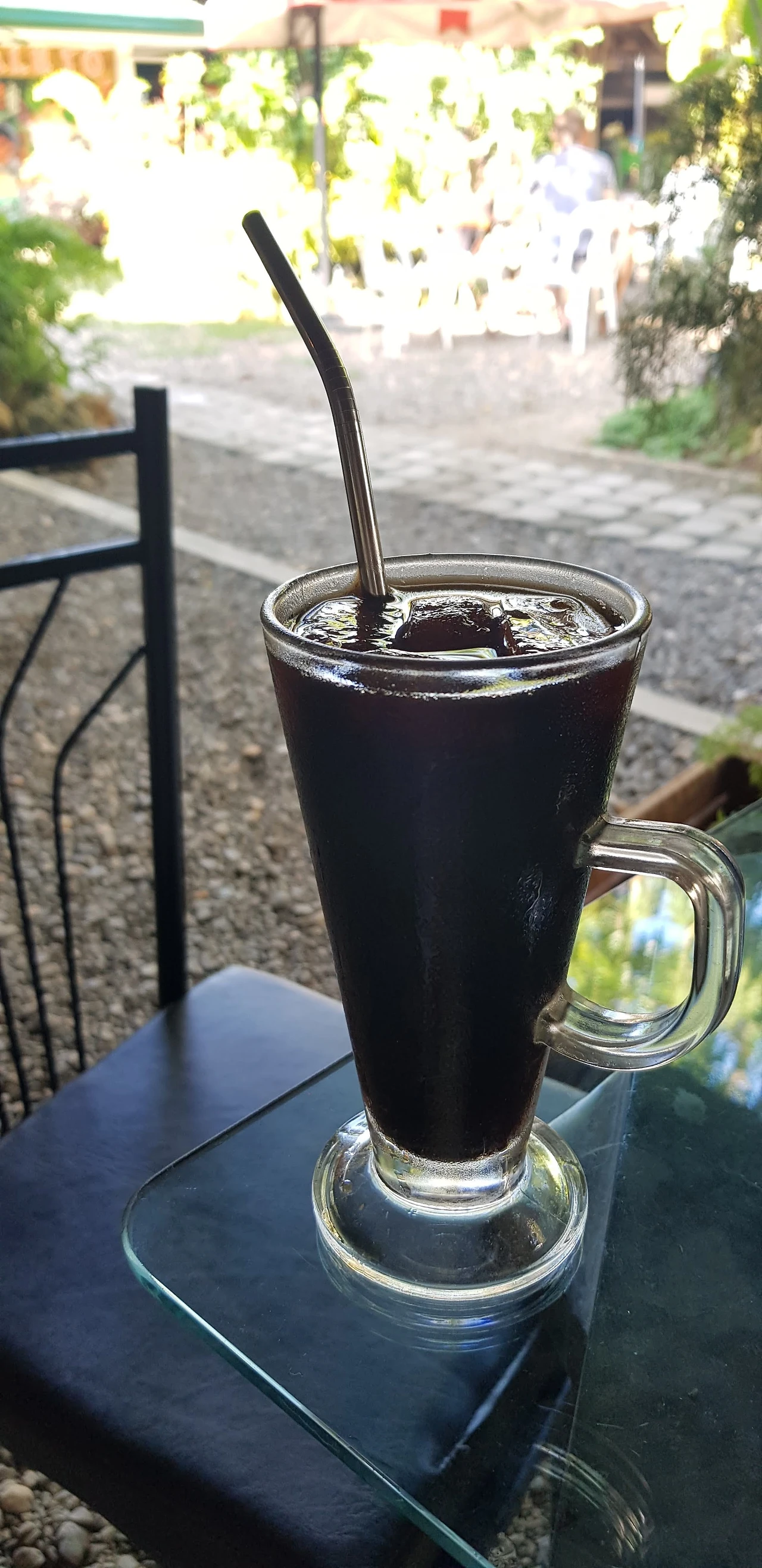어떤 맛일까.약간의 기대감을 안고 아이스커피부터 한 모금 마셨다. 시원한 갈색의 액체가 입속으로 흘러들어오자 좀 전의 기대감은 사라지고 그 자리에 허탈한 웃음이 찾아들었다. 원두의 향이 미세하게 느껴지기는하나인스턴트커피와 비슷한 맛이었다. 다크 아라비카 품종으로 내렸다는 뜨거운 스페셜 커피는 아이스커피보다 좀 더 부드러운 맛이었으나 역시 원두의 풍미는 잘 느껴지지 않았다.그나마 다행인 건 수돗물 맛은 나지 않았다는 점이다. 예전에 숙소 근처에 있는 작은 카페-아마도 현지인들이 주 고객인듯한-에 들어가서 아메리카노를 주문했다가 수돗물 맛이 너무 심하게 나서 몇 모금 마시지도 못하고 그냥 나왔던 적이 있다. 이곳의 커피는 그 정도는 아니었으나 직접 원두를 갈아서 내린 커피치고는 아쉬움이 느껴졌다. 일반 brewed coffee는 25페소라고 하니 로컬 커피 체험을 해보고 싶으면 저렴하게 그걸 시키는 게 나을 것 같다.(참고로 우리가 주문한 아이스커피는 100페소, 한화로 약 2,300원 돈이다.) 기대에 못 미치는 맛이었지만 그래도 싱그러운 초목이 우거진 공간에서 현지인들이 즐겨 마시는 커피를 마시니 섬사람들과 조금은 더 가까워진 느낌이었다. '진짜 커피'라는 점을 강조하며 본인의 핫플레이스를 우리에게 추천해준 순박한 그녀도 고마웠다.
