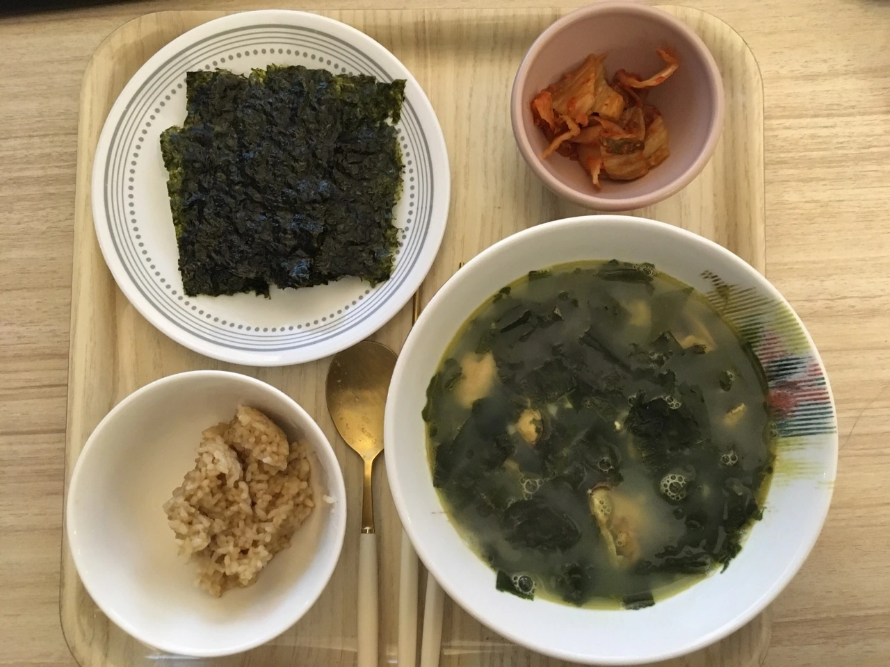 2. 일주일에 한 번은 저녁에 미역국을 먹게 되는 것 같다. 미역국에 필요한 재료는 홍합, 말린 미역, 마늘, 참기름, 소금. 나는 미역국에 소고기 대신 홍합이나 바지락을 쓰는 걸 좋아한다. 소고기는 유통기한은 없지만 사는 즉시 빨리 써야 하는 부담감이 있지만, 마트에서 파는 얼려진 홍합과 바지락은 나도 냉동한 상태의 홍합과 바지락을 언제든 쓸 수 있어서 편하다. 나는 바지락보다는 홍합을 선호한다. 홍합이 우러나오면 국물 맛이 엄청 진해지기 때문이다. 말린 미역은 자잘하게 손가락으로 잘라놓고 물에 불린다. 그리고 미역국엔 역시, 참기름이 필수. 미역국을 선호하는 이유는 재료들이 오랫동안 보관이 가능해 언제든지 쉽게 해 먹을 수 있기 때문이다.