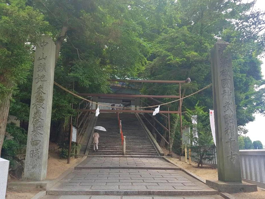 내비게이션만 흘깃 훔쳐보며 걷기만 하다 모모타로의 전설이 깃든 기비쓰 신사 입구에 다다랐다. 나뭇잎만큼 파란 이끼가 슬어있다. 한 걸음씩 계단을 올라간다. 고요했다. 이곳에서의 소리는 그저 새가 지저귀거나 바람에 잎새가 흔들리는 소리뿐이 없었다. 적막함, 사람을 편하게 만드는 구석이 있다.