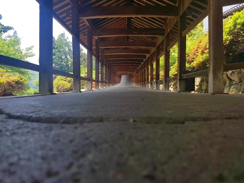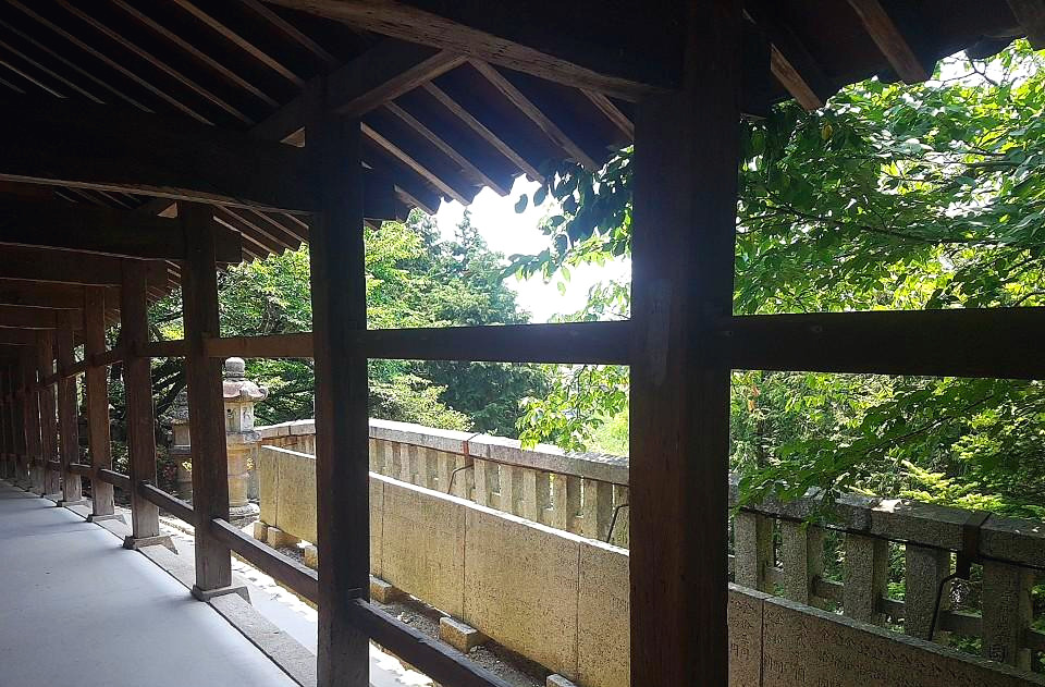 회랑을 걷는 것도 낭만적이었지만 회랑에서 바라본 풍경도 아름다웠다. 사람의 손이 미처 닿지 못해 이끼가 낀 돌담들 그리고 이곳의 주민들까지. 조금 더우면 의자에 앉아 신사를 방문한 사람들과 가벼운 목례도 했다.