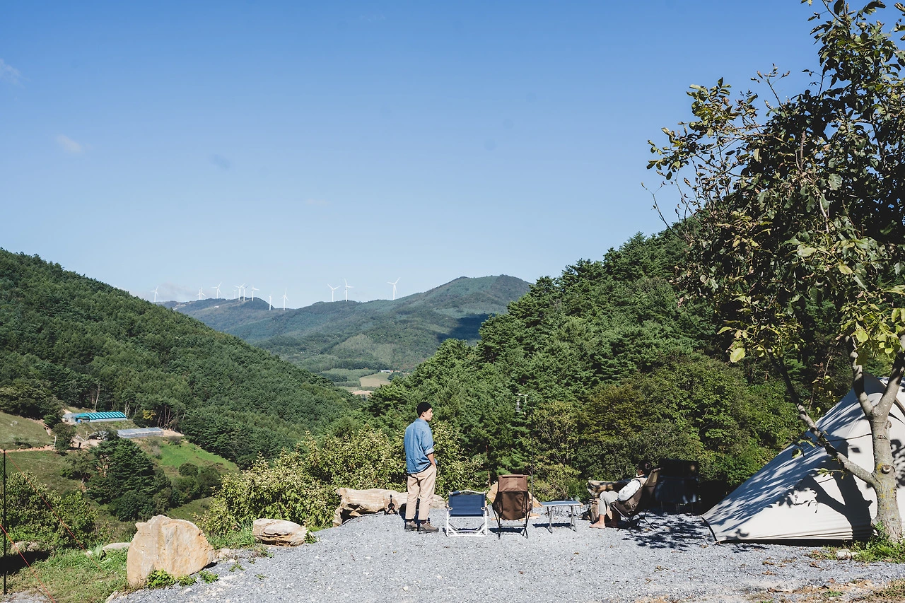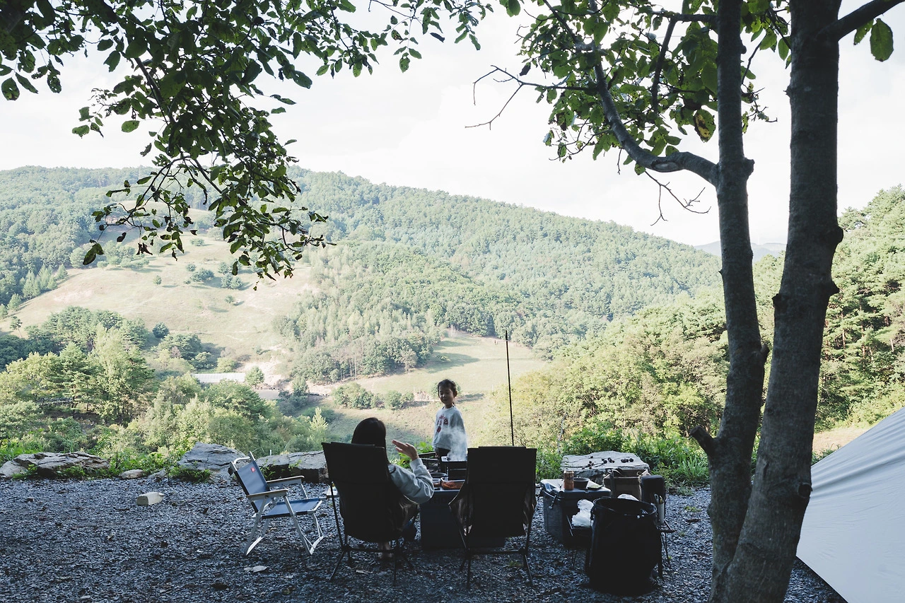 좋아 보였던 사이트에 계시던 분이 돌아갈 준비를 하시는 것 같아 여쭤봤더니 곧 떠나신다고 한다. 자리를 옮기는 걸 고민했고, 혜원이가 옮기자고 했다. 보통 이런 경우에 혜원이가 내린 결정들은 조금만 지나고 봐도 좋은 선택들이었다. 옮기자는 혜원이 말에 고민은 더 하지 않았다. 혜원이와 딸이 산책을 가 있는 동안 이사했다. 멋진 사이트였다. 둘째 날의 오전은 그렇게 지나갔다. 새로운 자리에서는 또 새로운 느낌이 들었다.