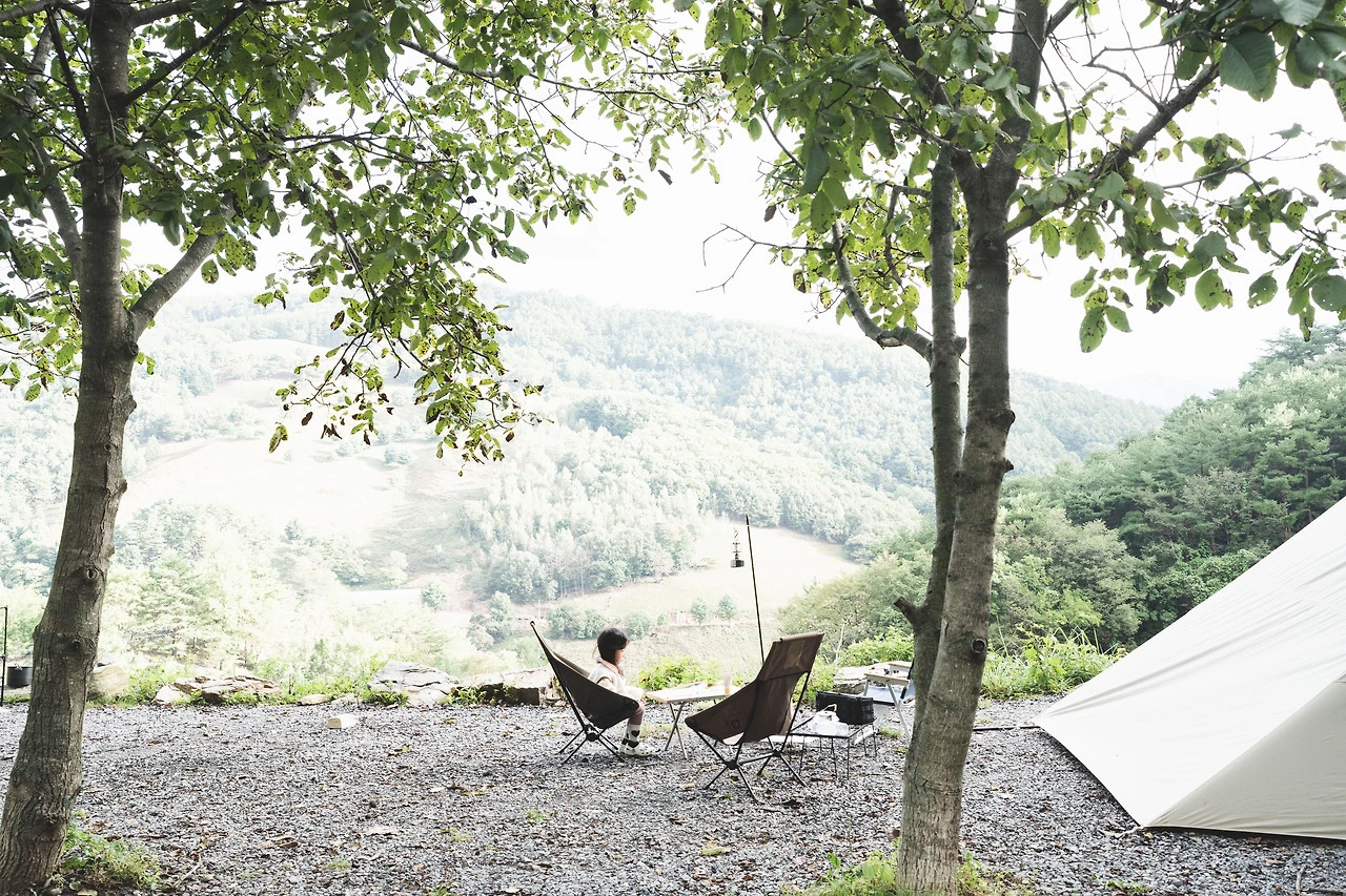 딸은 졸렸는지 낮잠을 자겠다고 했다. 처음 있는 일이었다. 낮잠을 꼭 자야 하는 딸은 캠핑 올 때마다 신난 마음에 전혀 잠들지 않았었기 때문에, 낮잠은 혜원이와 나에게는 걱정거리였다. 그런데 이번엔 먼저 자겠다고 하더니 금방 잠에 들었다. 혜원이와 나 둘이서만 있는 시간이었다. 아무 생각 없이 먼산을 보고 있기도 했고, 자리를 옮기길 잘했다는 이야기, 요즘 우리 사는 이야기들을 했다. 별거 없지만 특별한 오후였다.