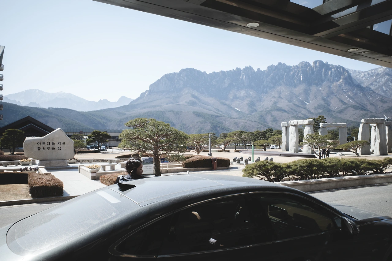 이야기를 꺼내놓고 바쁜 일상에 잊고 지내다, 출발일이 되었다. 아침에 일어나 커피를 내려 텀블러에 담고, 차에 짐을 싣고 내비게이션에 목적지를 입력하고자 혜원이에게 리조트 이름을 물었다. 소노델피노라는 대답을 듣고 아무 생각 없이 내비게이션에 목적지를 입력하자 246km, 세 시간이 넘는 예상시간이 보였다. ‘홍천이 이렇게 멀었나’ 하며 지도 서머리를 보는데, 우리 집인 서해 끝에서 출발해 동해 끝까지 가는 경로였다. 목적지는 홍천이 아닌 고성이었다. 홍천에 있는 리조트 이름과 헷갈려 고성에 있는 리조트를 예약한 혜원이었다. 덕분에 생각지도 못한 고성에 가게 되었다.