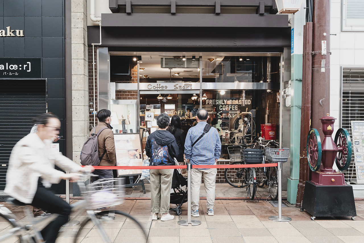 다음날 아침은 스마트 커피였다. 꽤 이른 시간에 도착했다고 생각했는데도 사람들이 문 밖에서 기다리고 있었지만, 우리 차례는 금방 왔다. 이곳은 교토에서 가장 오래된 커피하우스 이면서도 일본의 커피문화 킷사텐을 대표하는 곳이기도 하다. 향수를 불러일으키는 에그샌드위치, 프렌치토스트와 커피로 아침식사 하는 내내 엄마 아빠는 어릴 적 보던 음식, 컵, 크림 등에 대해 이야기하시며 좋아하셨다.