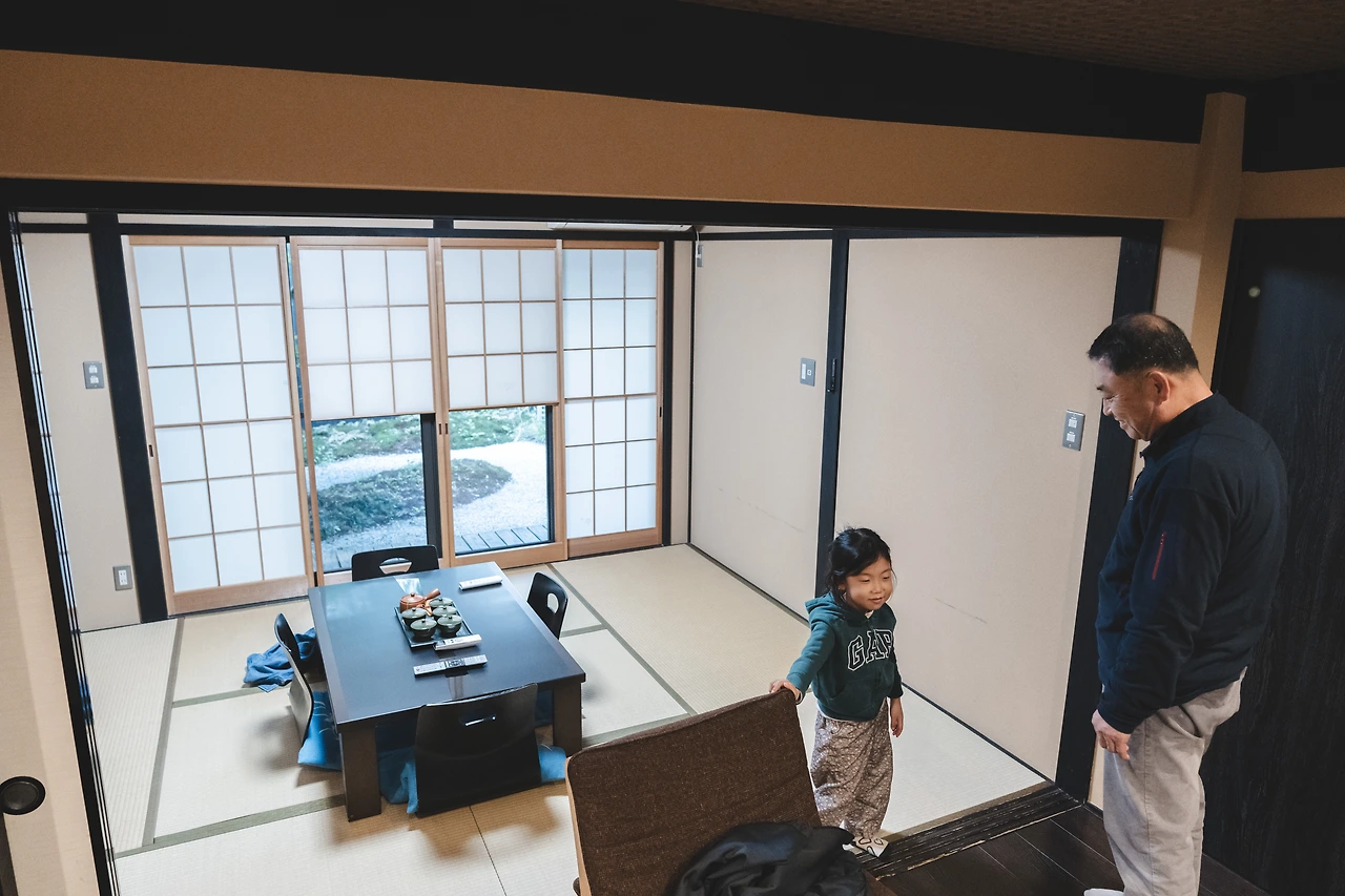 에어 비앤비로 일본, 특히 교토에서 흔히 볼 수 있는 전통적인 목조주택인 마치야를 예약했다. 자그마한 정원과 다다미방이 있는 아늑한 공간이었다. 이곳에서 우리 가족은 5일 동안의 교토 여행을 시작했다.