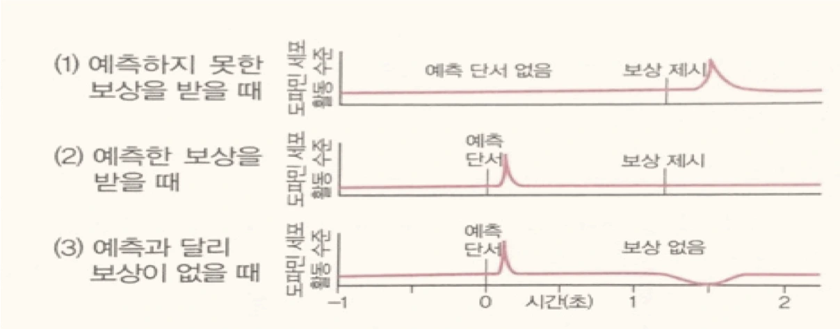 김학진 교수의 저서 '이타주의자의 은밀한 뇌구조'에서는 우리 뇌는 뜻밖에 긍정적 일이 생기면 더 많은 쾌감을 느낀다고 이야기한다. 쉽게 말해 예측하지 못했거나 기대하지 않은 상태에서 긍정적 보상이 발생하면 많은 즐거움과 쾌감을 더 느끼다는 것이다. 이것은 신경전달물질인 도파민(dopamine)이 예측하지 못한 보상을 받을 때 더 반응하기 때문이다. 반대로 예측한 보상을 받을 때는 쾌감은 발생하지 않으며, 예측과 달리 보상이 없을 때는 오히려 도파민 활동이 감소되어 감정은 더 저하되게 된다.