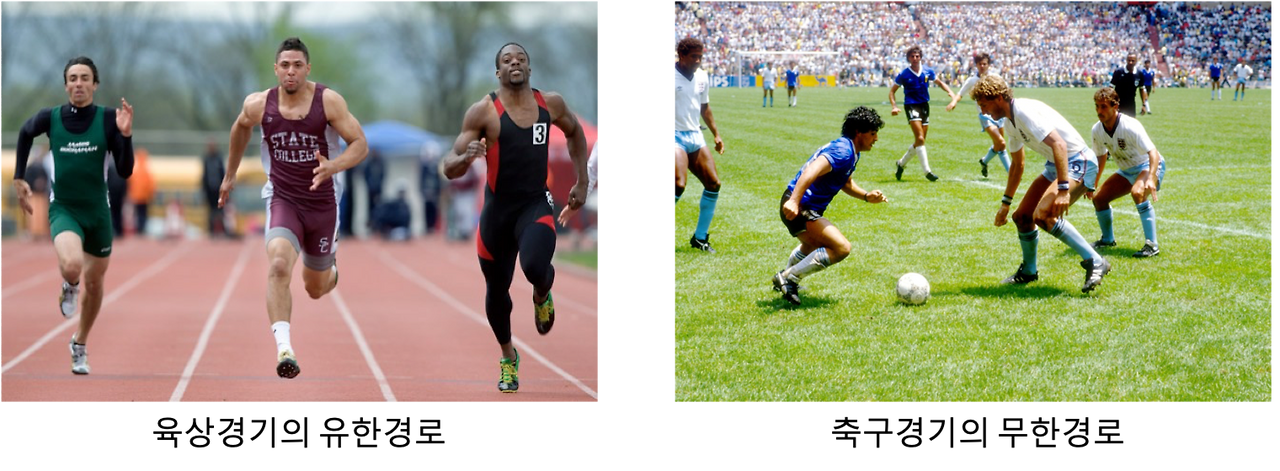 축구는 직선 경로가 아니며 오히려 많은 경로를 창조할 수 있어야 했다. 그래야 상당 수비수를 제치고 골을 넣을 수가 있다. 1986년 월드컵 아르헨티나와 잉글랜드 경기에서 하프라인부터 7명의 수비수를 제치고 골을 넣은 마라도나를 보면 그의 움직임이 얼마나 창조적인지 경의를 표하게 한다.